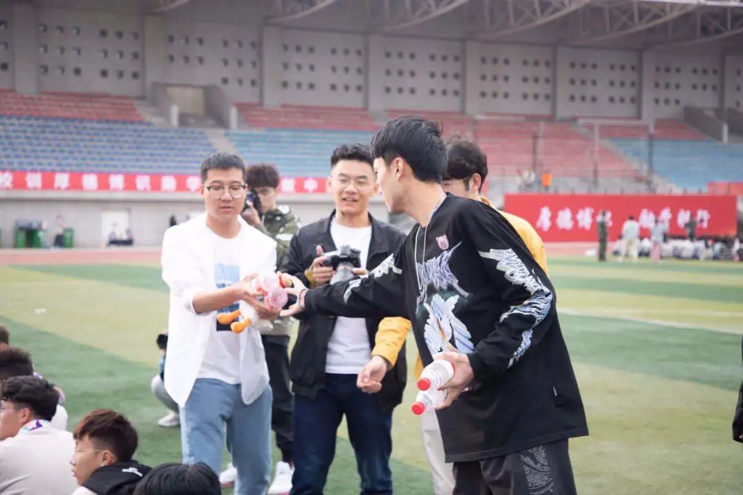 学生会的学长们扛着水,忙碌地为艺设20级新生们送水,新生们的脸上充满了笑容,嘴里不停地说着“谢谢”,一瓶瓶的爱心,一句句真诚的感谢,勾画出了一幅和谐美好的场景。