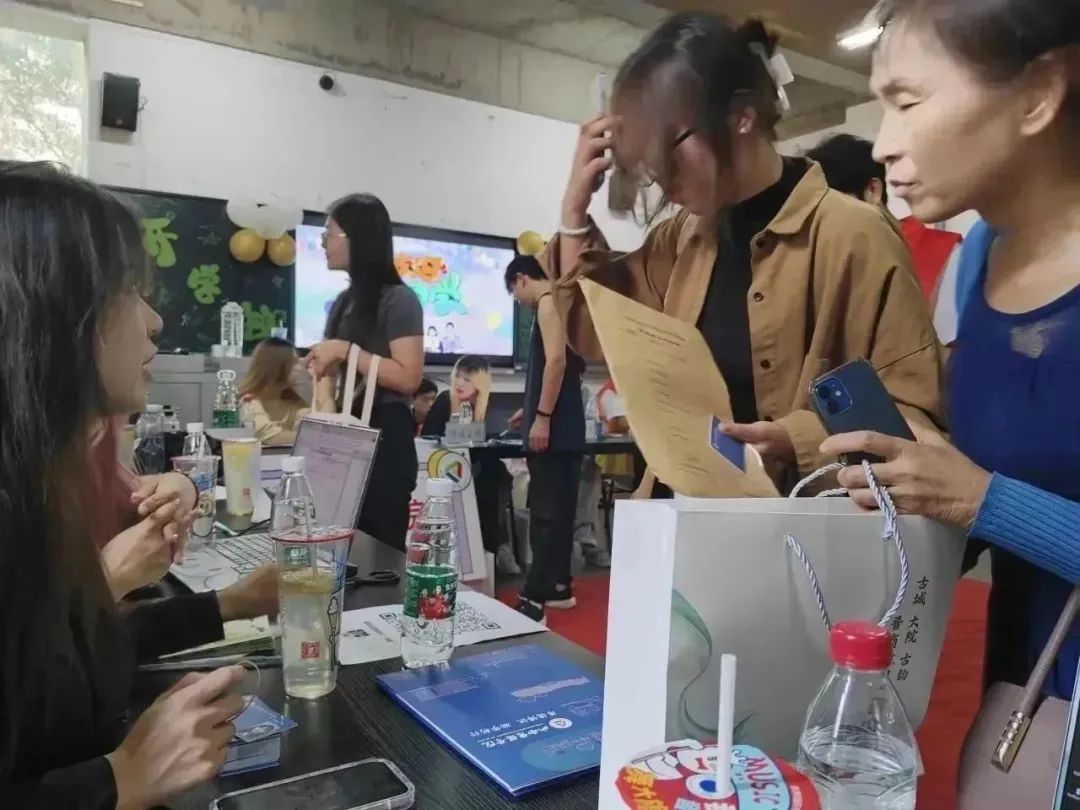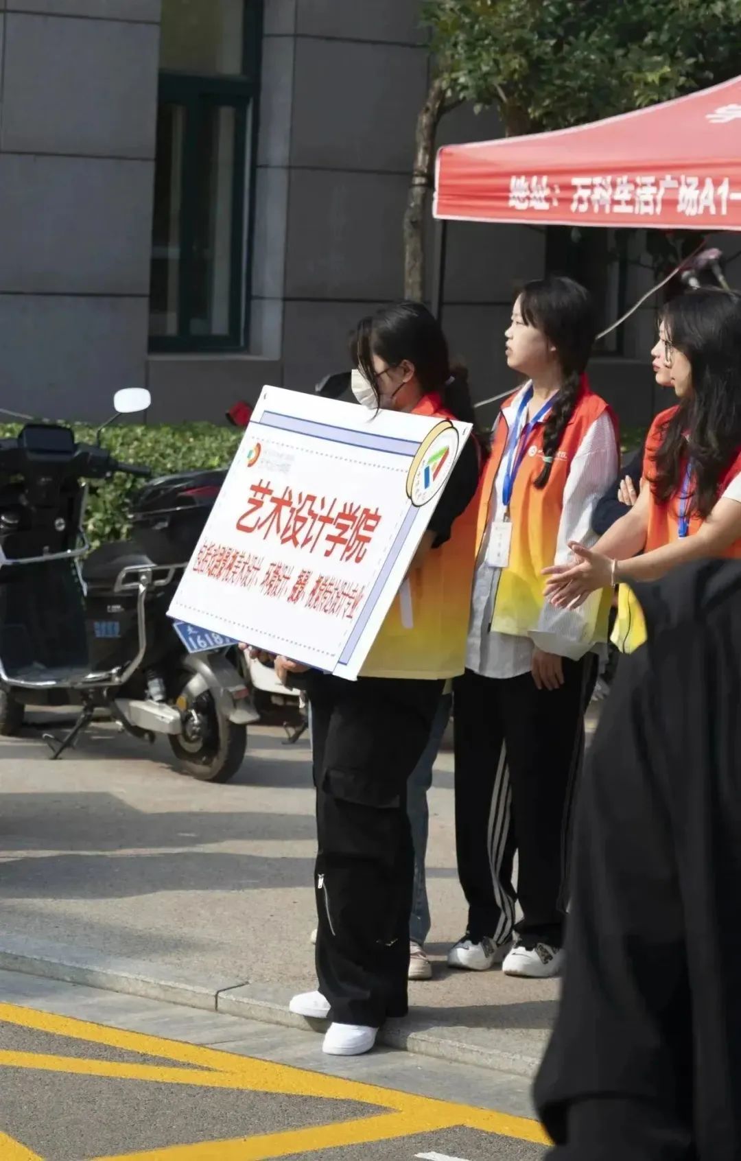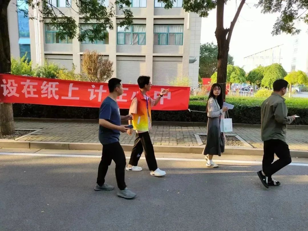 校园里,太阳集团tyc539的学长学姐穿着整齐,手持指引牌,与新同学积极交流,帮助新同学,照亮新同学们前行的方向!