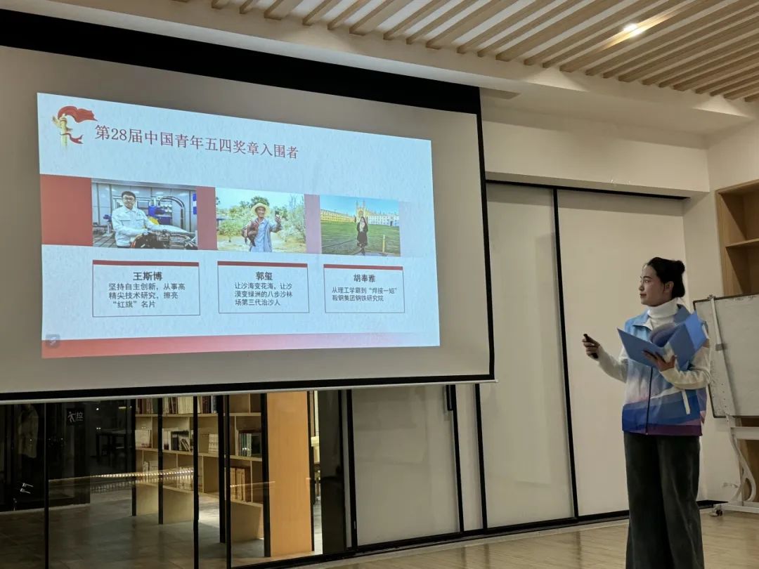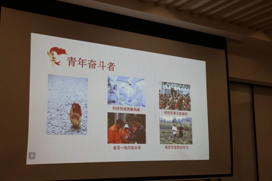 会议以第二十八届中国青年五四奖章入围者王斯博、郭玺、胡奉雅为例子,为我们展现了奋斗者无私奉献的爱国精神,敢于突破的创新精神,专注执着的敬业精神以及心怀大爱的为民精神。