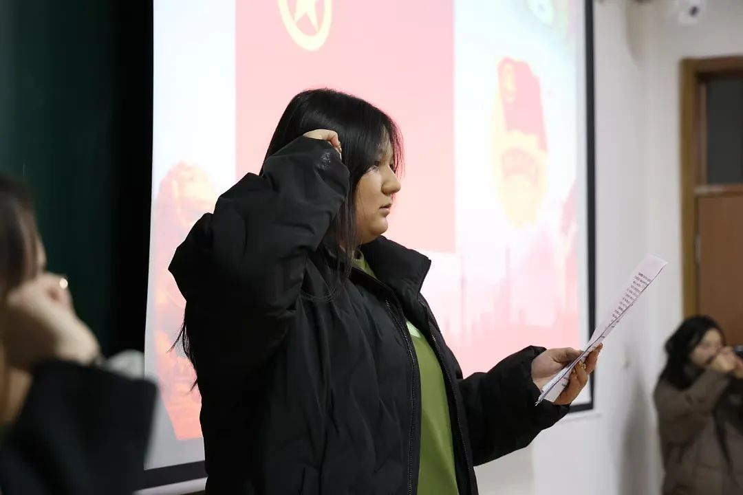 谭萍宣读新团员名单。每一个名字都承载着努力与梦想,他们在学习与生活中积极进取,展现出新时代青年的优秀品质。当念到自己名字的那一刻,新团员们脸上洋溢着自豪的笑容,眼中闪烁着激动的泪花。这是他们成长道路上的一个重要里程碑,也是他们青春岁月里最珍贵的回忆。