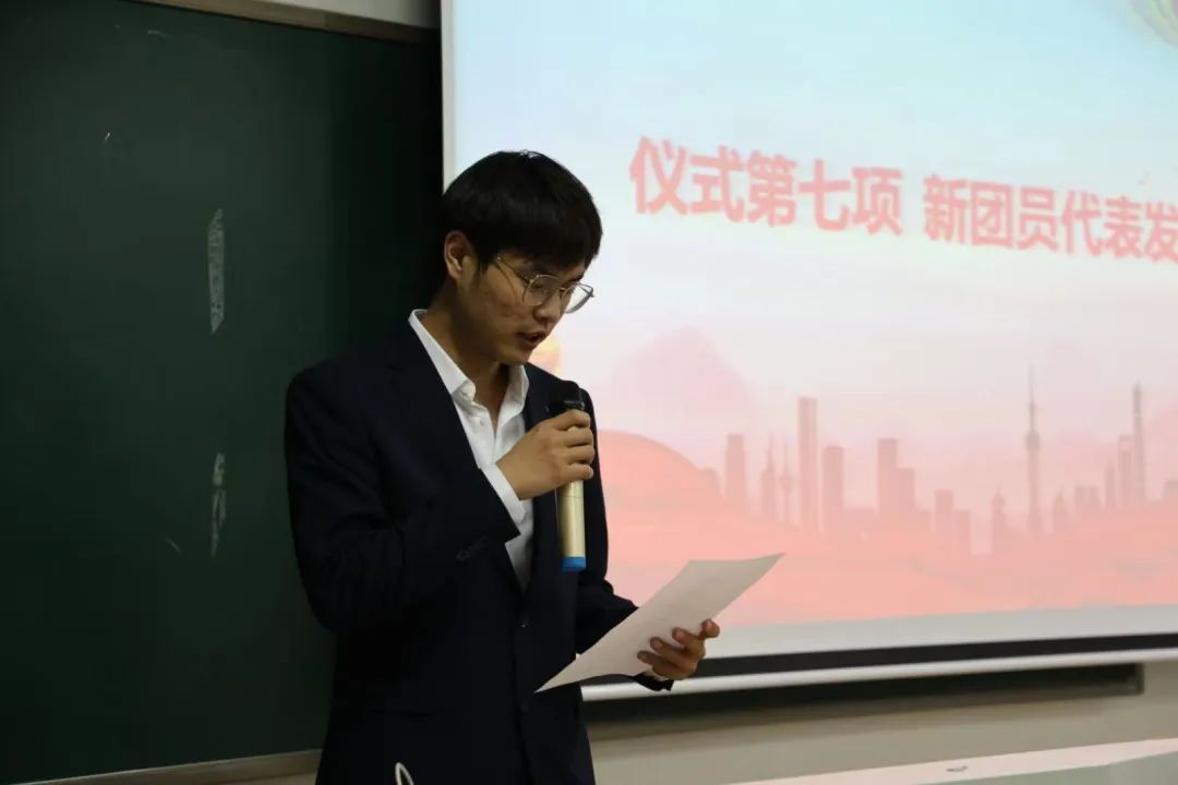 优秀团员代表也为新团员们送上了祝福和鼓励。他讲述了自己在共青团组织中的成长经历,希望新团员们能珍惜时光,努力提升自我,在共青团的大家庭中茁壮成长,为实现中华民族伟大复兴贡献自己的力量。