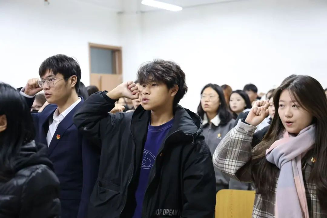 宣誓随后,新团员们举起右拳,在领誓人的带领下庄严宣誓:“我志愿加入中国共产主义青年团,坚决拥护中国共产党的领导,遵守团的章程……”誓言铮铮,响彻校园。这是他们对共青团组织的庄重承诺,也是他们面向未来的青春誓言。