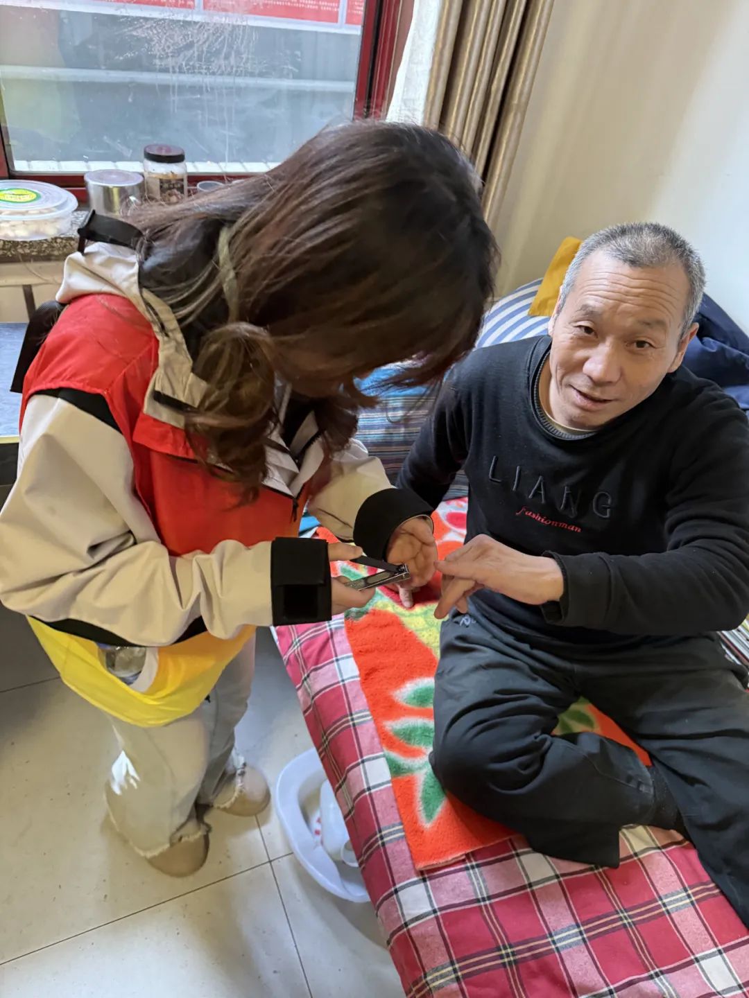 志愿者帮老人打扫、照料生活,用温馨行动与爱心让老人生活更舒适惬意,使其感受关怀。整个养老院里,志愿者与老人们的互动温馨而自然,像是一幅幅充满爱的画卷。