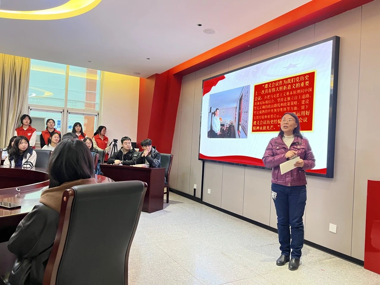 宣讲团成员魏洁结合珍贵的历史图片和视频,生动讲述遵义会议的背景、内容及历史意义,帮助大家深刻理解坚持真理、独立自主、团结奋斗、勇于担当的遵义会议精神。