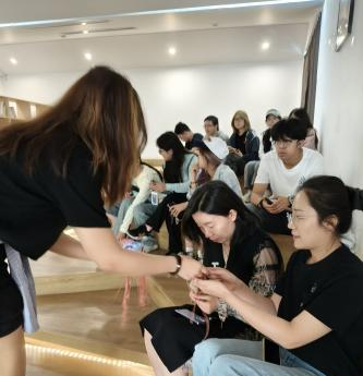 动手实践环节“巧手匠心-编织五彩绳”。佩戴五色丝线有辟邪、祈福纳吉的美好寓意。经过一番努力,一条条饱含着祝福与心意的五彩绳呈现在眼前,同学们纷纷将编织好的五彩绳戴在手上,互相欣赏、拍照留念。活动中同学们不仅感受到了节日的温暖和传统文化的魅力,也增强了党员的凝聚力,为营造积极向上、团结友爱的氛围奠定了坚实基础。