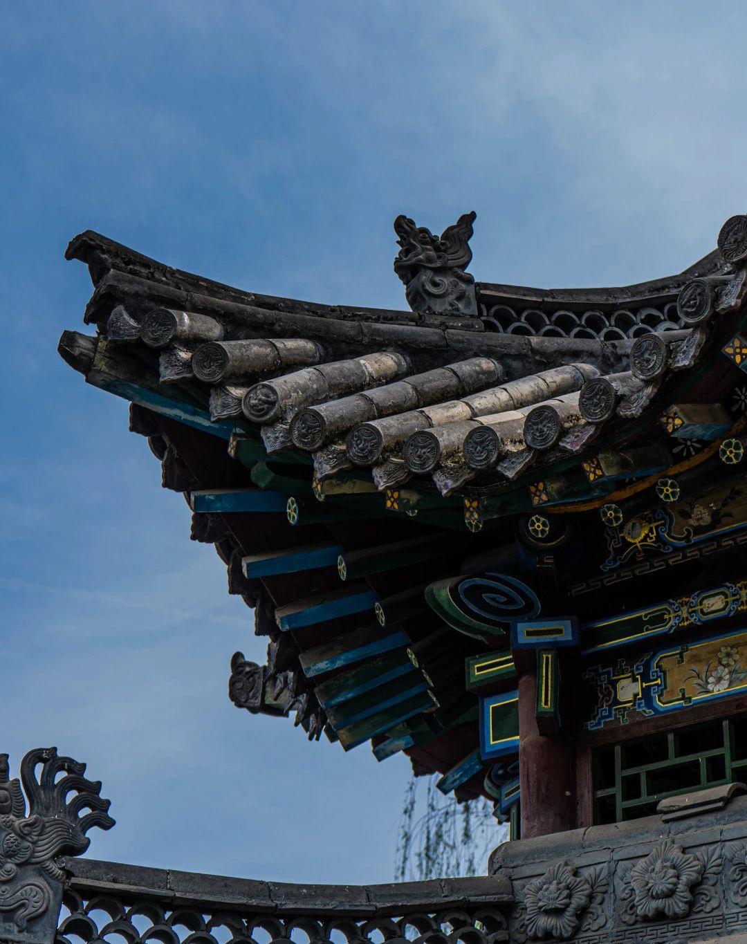 《飞檐映碧空:古韵建筑一隅》