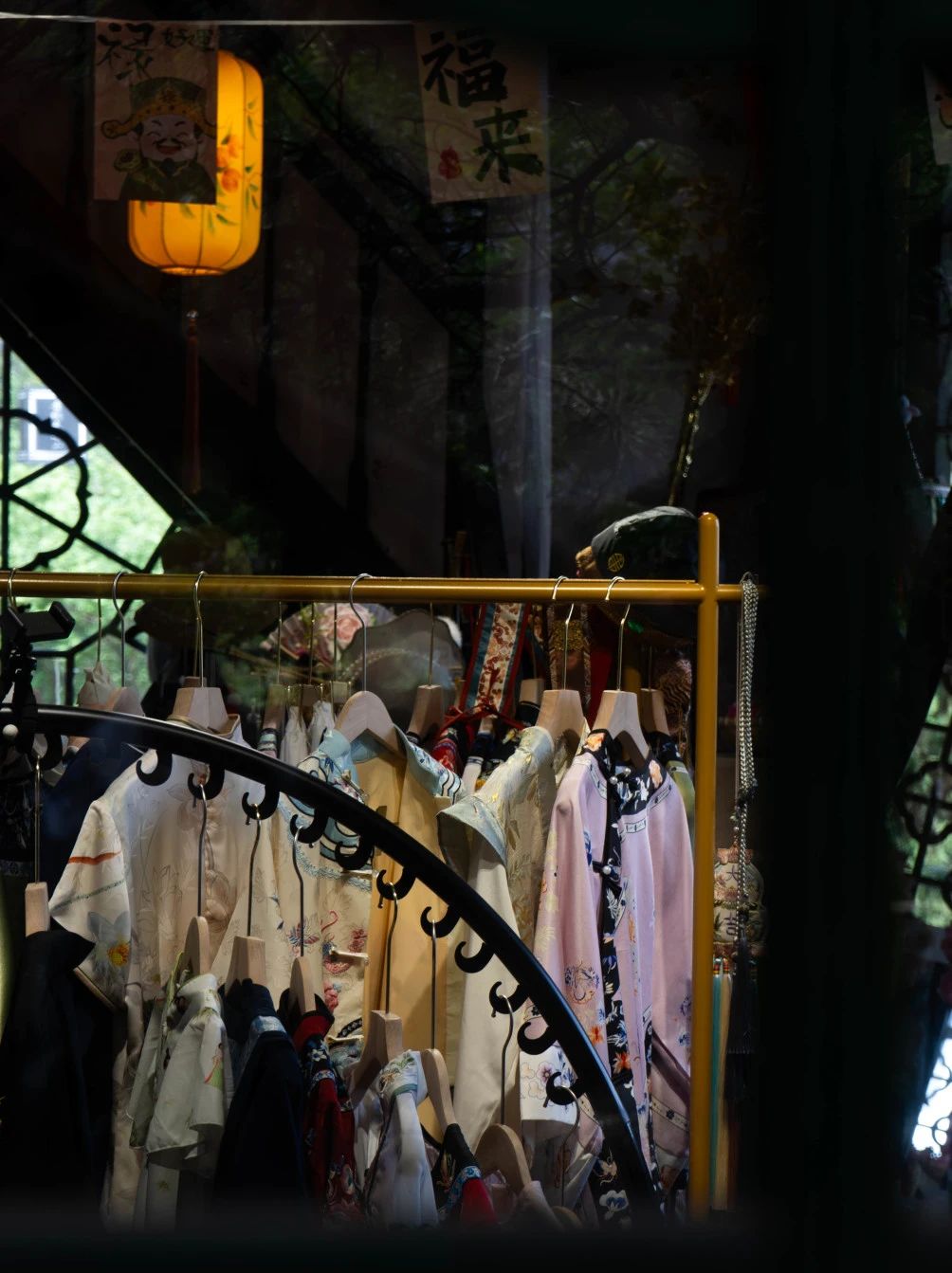 《朱廊幽径:绿意中的古韵长廊》