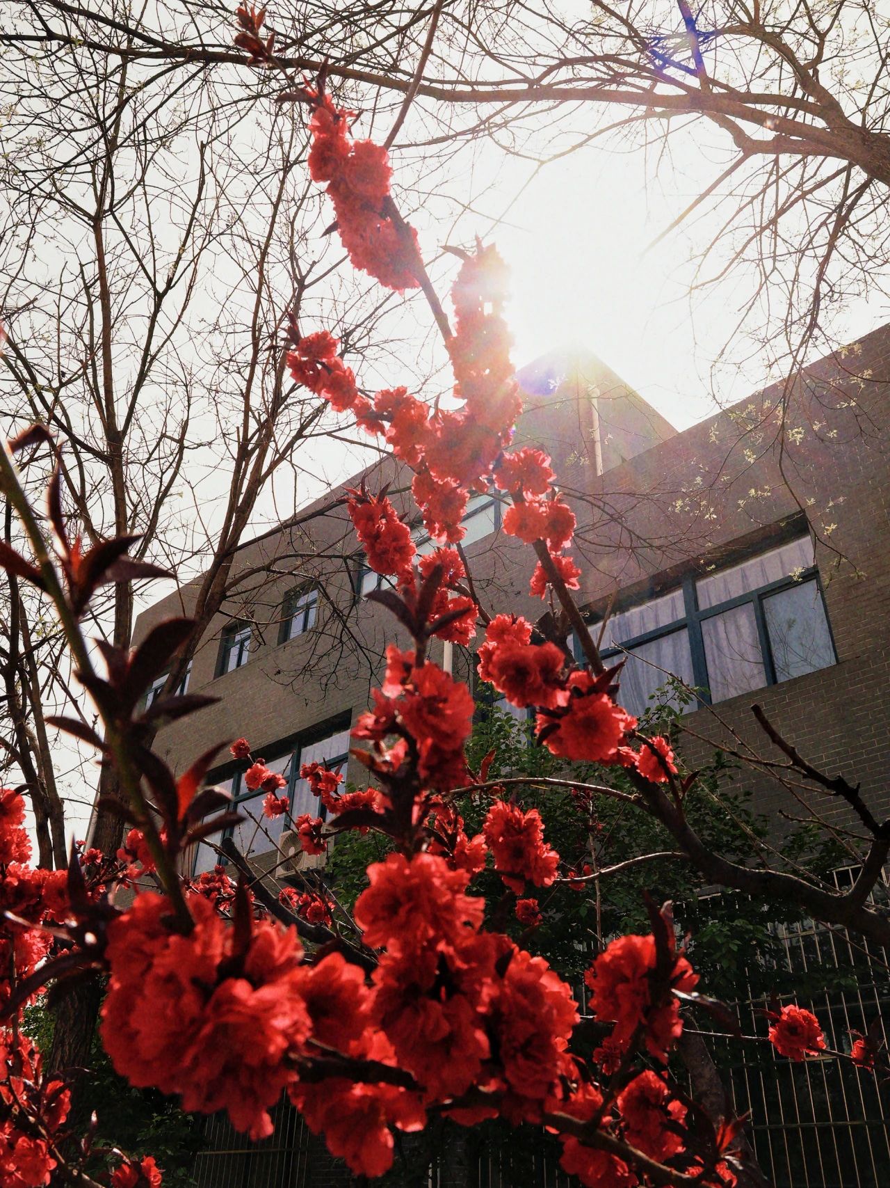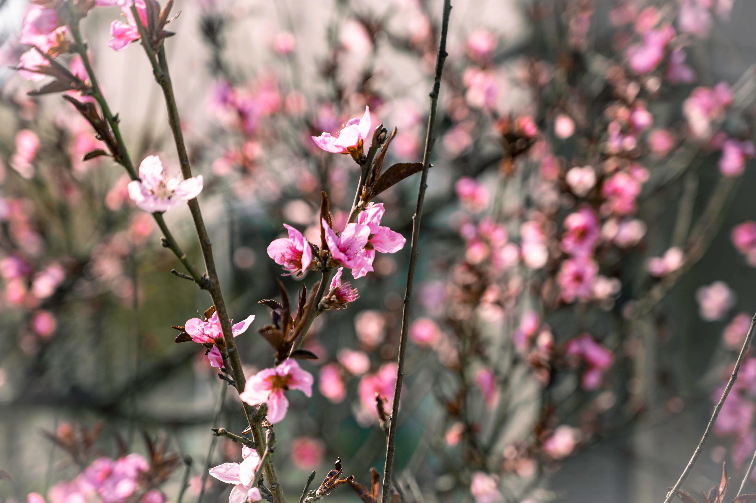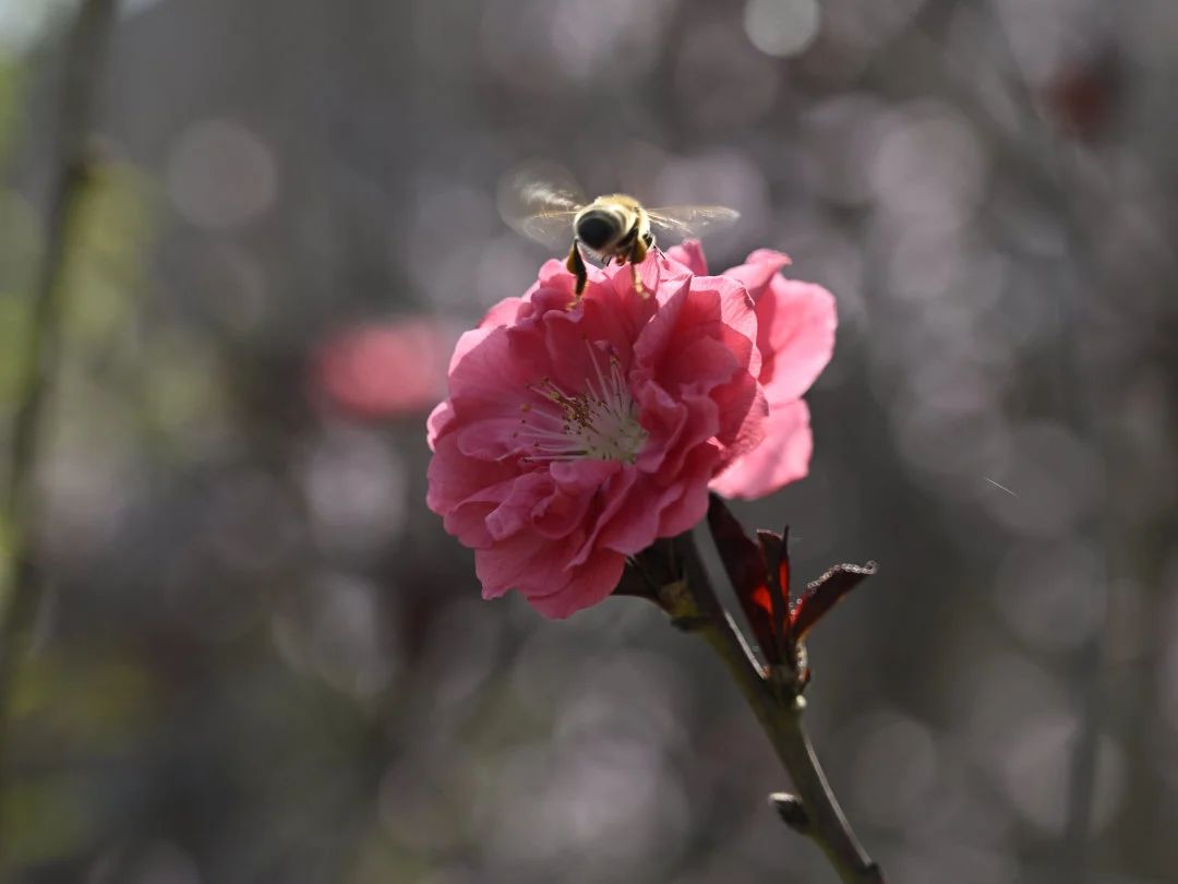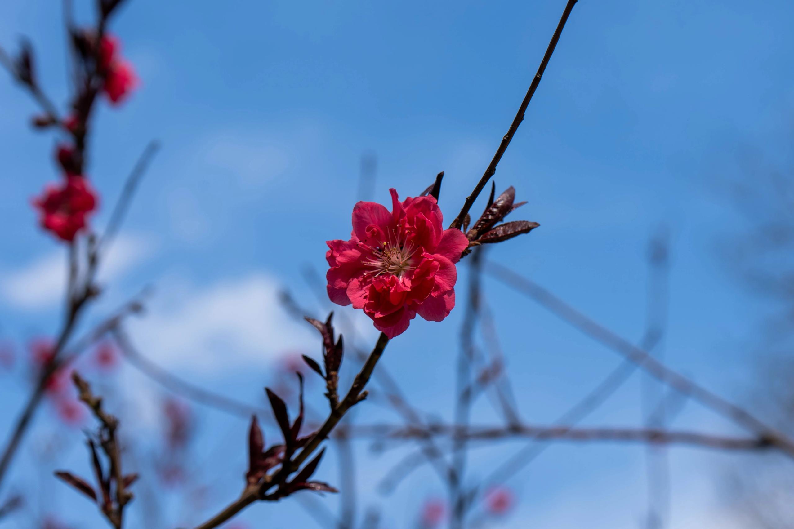《蓝天映桃韵:春日一枝红》