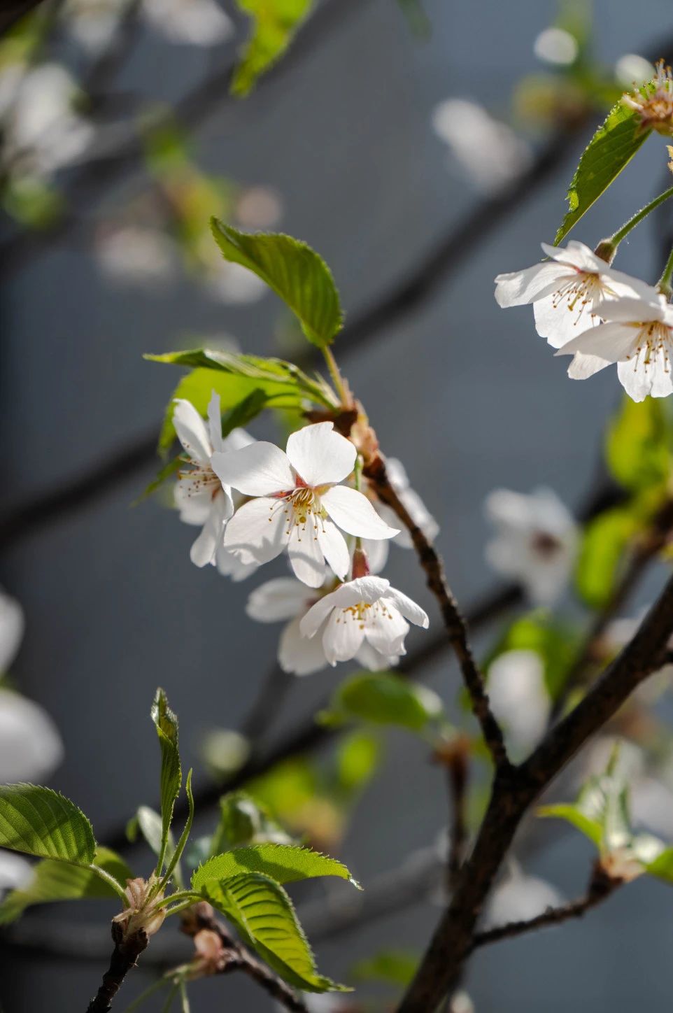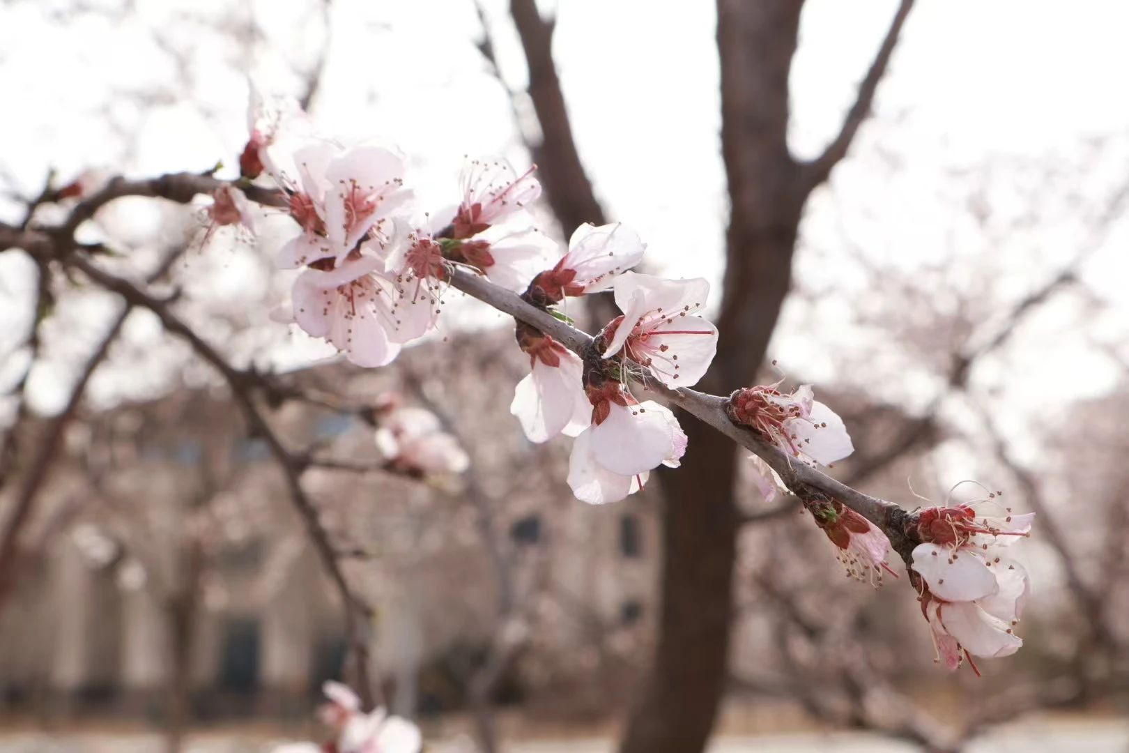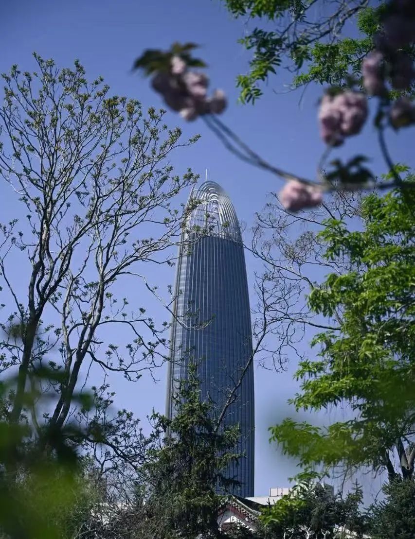 《蓝天映桃韵:春日一枝红》