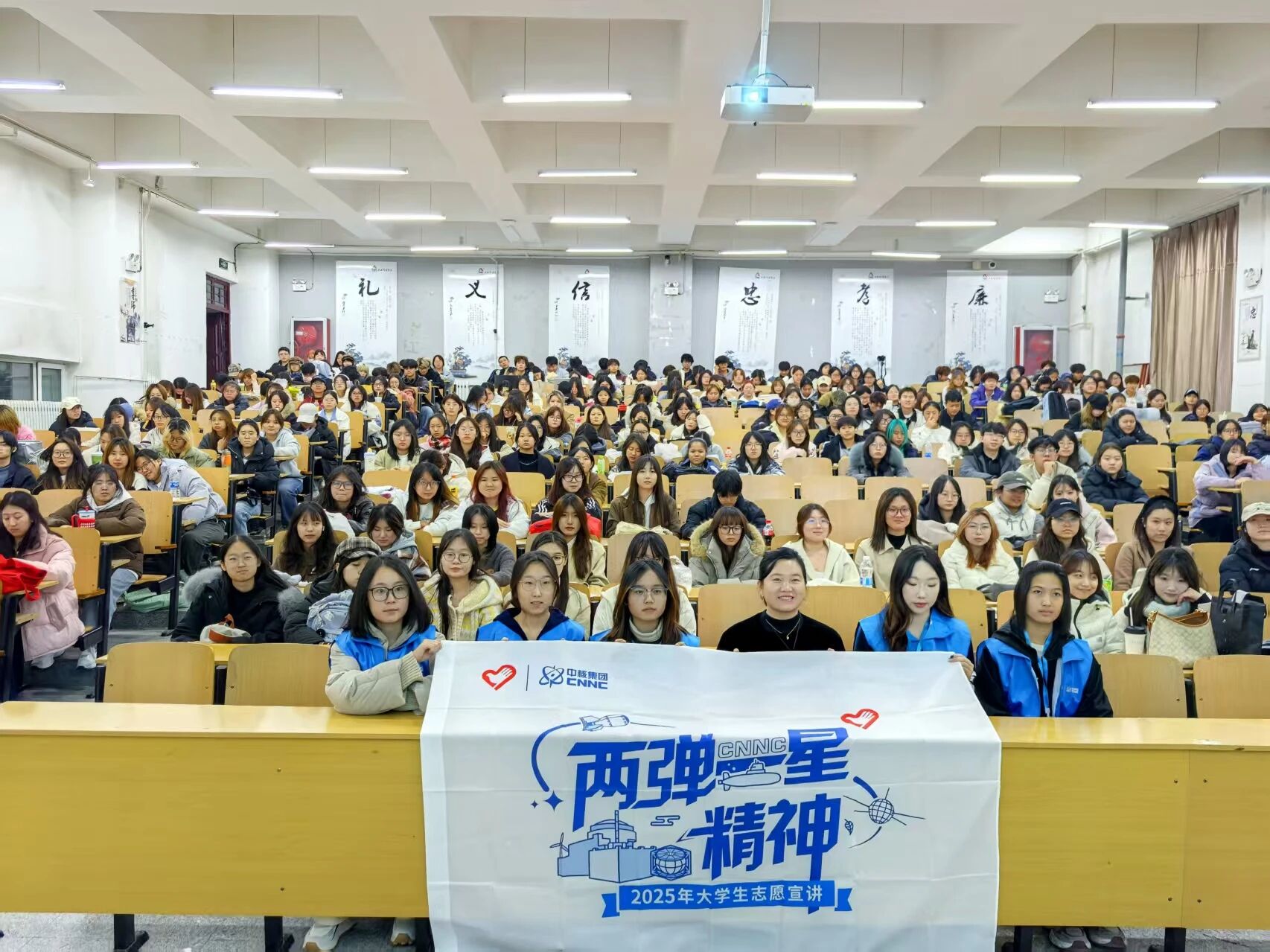 太阳集团tyc539学生第一党支部联合学生第二党支部、旗志辅导员工作室,共同开展了“两弹一星”精神宣讲会,邀请了团中央2025年大学生志愿服务宣讲团——“核声共振”两弹一星精神宣讲团进行现场讲述,参会学生达320余人。