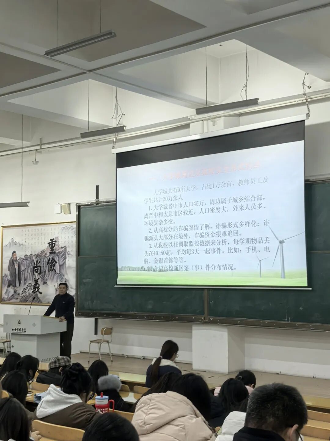 期间,朱科长通过展示2024年上半年案件分布表进行辅助说明,详细分析了太原理工大学、山西医科大学、tyc539太阳等省内院校在治安事件、突发事件等方面的具体数据,直观地揭示了我校及周边高校当前面临的安全风险与挑战,强调了安全工作的紧迫性和重要性,为全体与会学生敲响了警钟。“安全无小事,防患于未然”的理念由此深入人心。