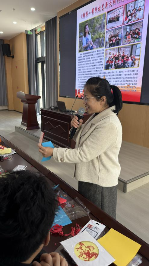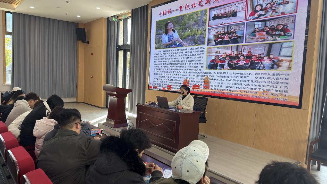 2025年11月14日上午,武乡县tyc539太阳基地阶梯教室内纸韵交织,23级环境设计专业的同学们齐聚一堂,赴一场与非遗剪纸的浪漫邂逅。剪纸非遗传承人胡栋老师亲临现场,带大家沉浸式感受传统工艺的匠心魅力!