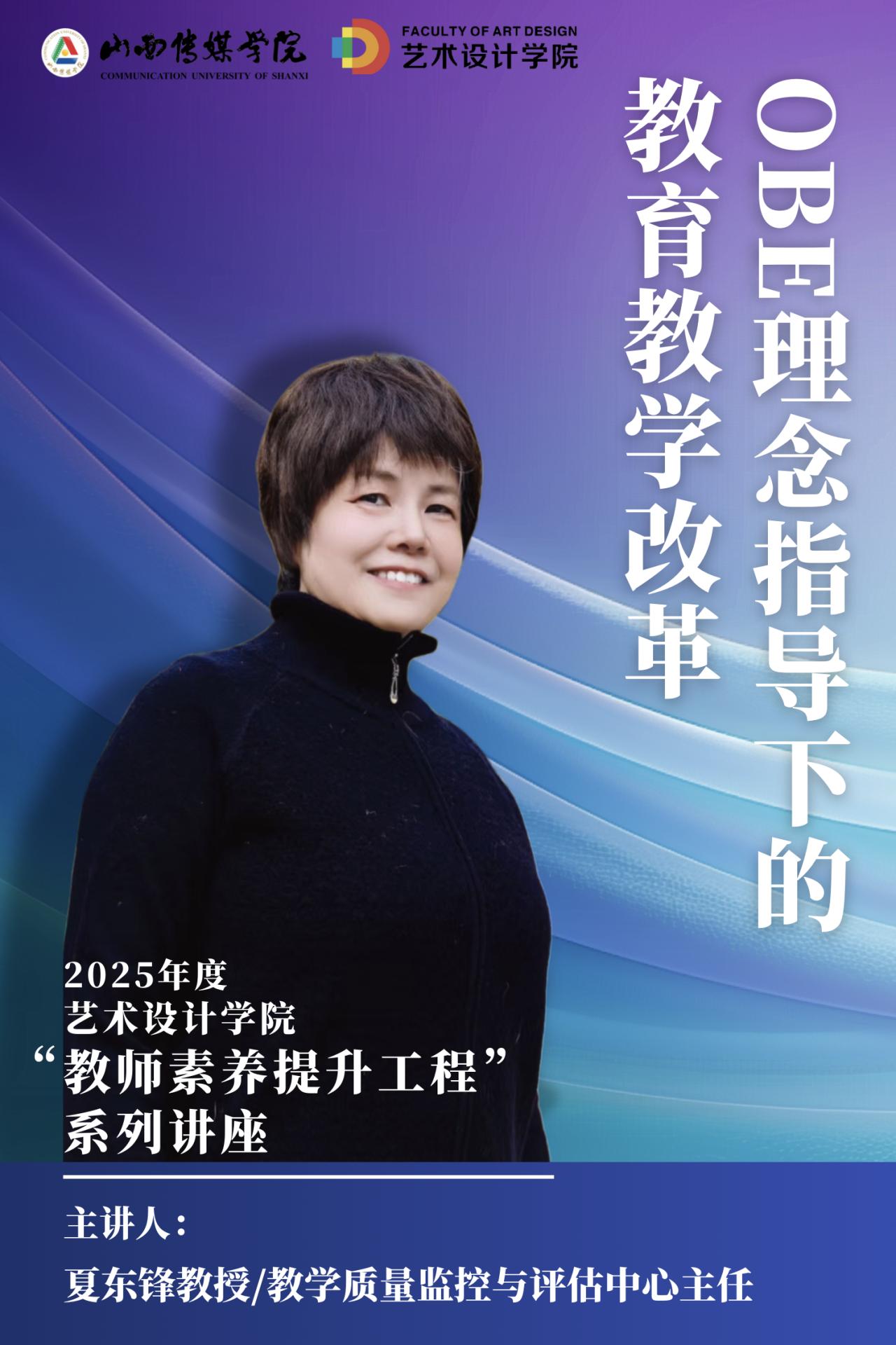 2025年12月18日,太阳集团tyc539「教师素养提升工程」系列讲座开讲,特邀学校教学质量监控与评估中心主任夏东锋以“OBE理念下艺术设计类专业教学改革”为主题,为全院教师精心打造了一场兼具教学理念深度与内容广度的专题讲座。