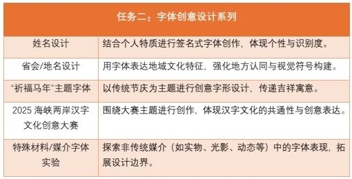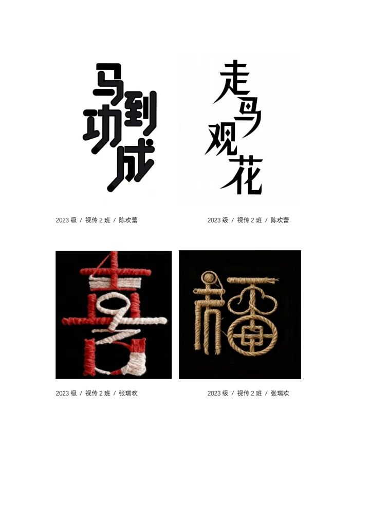 字体设计作为视觉传达设计专业的核心基础课程,是连接文字信息与视觉表达的关键纽带,对培养学生的文字创意能力、视觉审美素养及文化传承意识具有不可替代的作用。本课程通过理论讲授与实践创作相结合的教学方式,引导学生系统掌握字体设计的基础理论与创作方法,完成系列实践作业并汇总成规范画册。