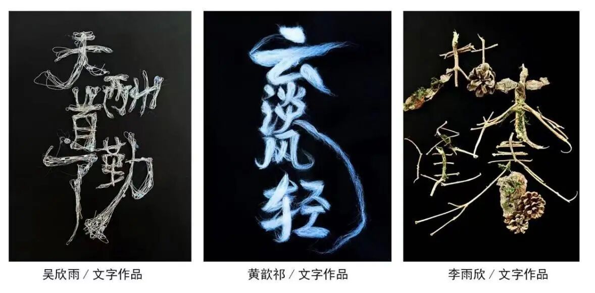 与此同时,汉字的材料化呈现方面也表现出色。学生们以汉字笔划构造为基础,选用合适物料,借助切割、盘绕、堆叠、粘合等技法,使文字突破平面印刷限制,化为可感知、具质地的立体创作,既凸显了汉字的外形魅力,又实现了物料特性与汉字内涵意境的有机统一。