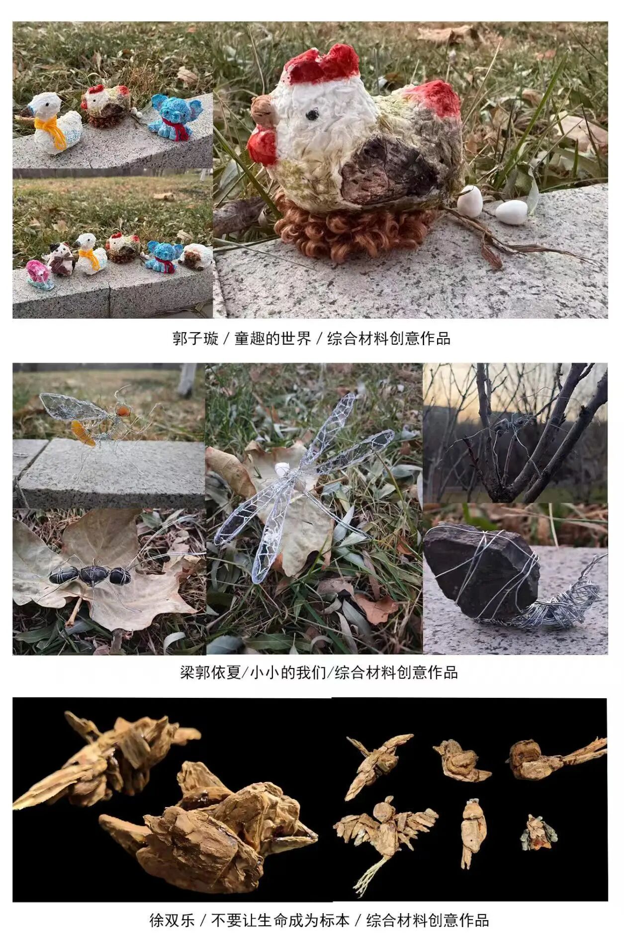 《综合材料创意表现》作为视觉传达基础板块的重要环节,承担着“以材料为语言、化手工为思维”的过渡任务。创作过程中的实验性与多样性显著提升了学生的设计热情,能够有效激发其设计思维与想象空间。这些作品或许尚不完善,但每一份创作都凝聚着同学们的付出与探索,每一次尝试都是成长路上的宝贵积累,为其日后的艺术实践拓展了新的思路与表达可能。