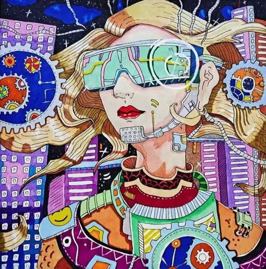 设计色彩的装饰训练,创作者通过色彩表达内心世界,赋予装饰作品审美价值和观赏意义。课上,我们进行了关于科技与未来、潮流与创新的探讨,创作自己喜欢的色彩作品,提升了同学们对色彩的整体感知与色彩综合应用的能力。