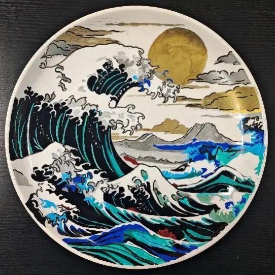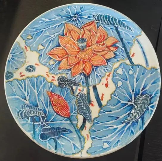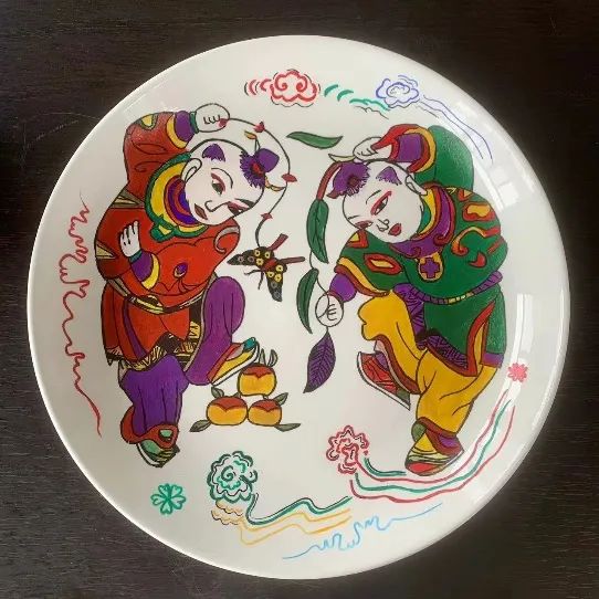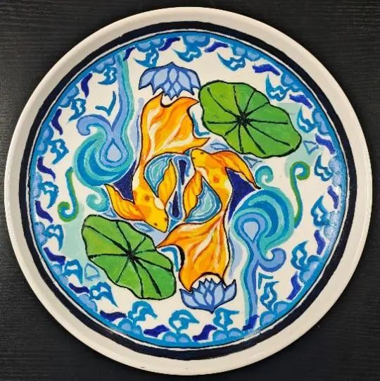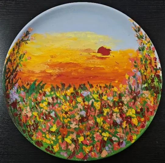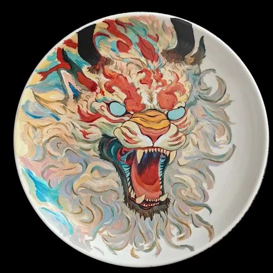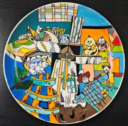 白色瓷盘的创作——表达每个人内心中独特且富有创意的图像。在王薇老师的启发下,同学们尝试引入设计概念,选择个人感兴趣的内容进行设计色彩的完善。色彩的设计在动感语言表达方面,点的表达方面融入各种冷暖色调的不同来保持一些提亮效果;线的表达方面要靠曲线、倾斜线来表现动感;在面的表达方面,借用盘子圆形来表现色彩的情感表达。通过点线面的应用,同学们色彩语言表达得更加生动、立体、鲜活,呈现出自己的艺术构思。