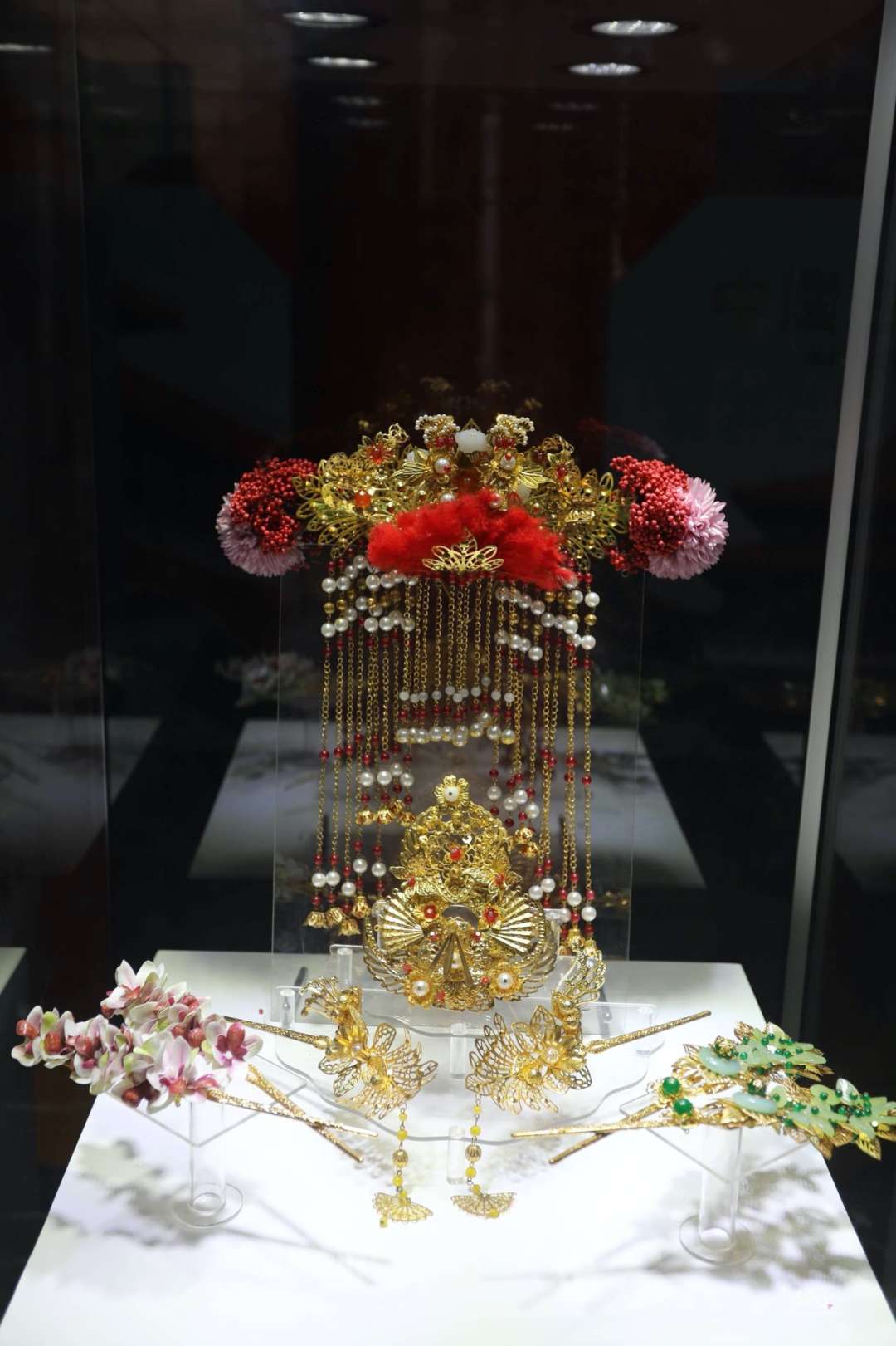 此次展览现场设置在明代万历年间户部侍郎赠尚书张养蒙的府邸,具有特殊的意义。作品是根据中国馆藏历代帝后经典冠冕改编再创造的基础上制成,主要分为前秦时期羽副胜、晚唐时期女供养人花冠及配饰、宋孝宗时期皇后等肩花凤冠、明孝宗时期皇后九龙九凤冠,明孝宗时期太后福寿䯼髻及配饰、清金累丝嵌珠宝凤钿共六组展品。作品充分考虑文创市场需求,运用普通材料,通过设计改编和手工制作再现中国古代经典冠冕的华丽色彩和典雅制式,旨在以零基础的大众为主体,广泛传播中国古典服饰文化。