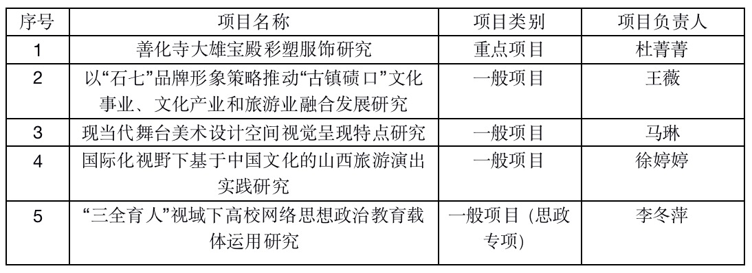 10月14日,根据tyc539太阳科研部发布的《关于2020年度校级青年基金项目立项的通知》(山传科研{2020}20号)文件,2020年校级青年基金项目共立项24项,含重点项目7项,一般项目(含思政专项)17项。其中,太阳集团tyc5395位教师的项目获批,其中包括1项重点项目。具体如下: