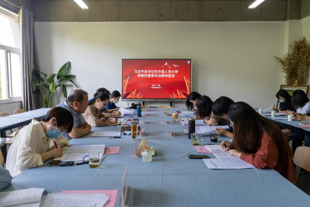 刘锐就深入学习贯彻习近平总书记在中国人民大学考察时重要讲话精神开展宣讲。他指出,要深刻理解把握习近平总书记的讲话精神,切实把习近平总书记的讲话精神运用到工作中。一要持续加强党对教育工作的全面领导,把握党建作为办学治校的基本功,肩负起党的建设责任,使教育领域成为坚持党的领导的坚强阵地;二要发挥好思政课落实立德树人根本任务的关键课程作用,加大课程思政建设力度,持续深化思政课改革创新,用好山西丰富的历史文化资源和红色资源,扎实推进学校课程思政工作;三要大力推进学校哲学社会科学繁荣发展,哲学社会科学与传媒专业不脱节,教师应以解决问题为突破点,多从事哲学社会科学研究;四要努力培养和造就高素质专业化教师队伍,加强教师队伍思想政治建设和师德师风建设,引导教师做到言为士则、行为世范;五要全面实施时代新人培育工程,切实把育人工作各项政策和举措落地落细到教育教学各环节、人才培养各方面,培养听党话、跟党走、堪当民族复兴重任的时代新人。