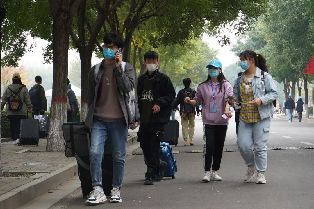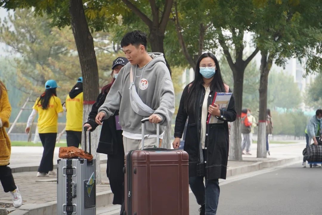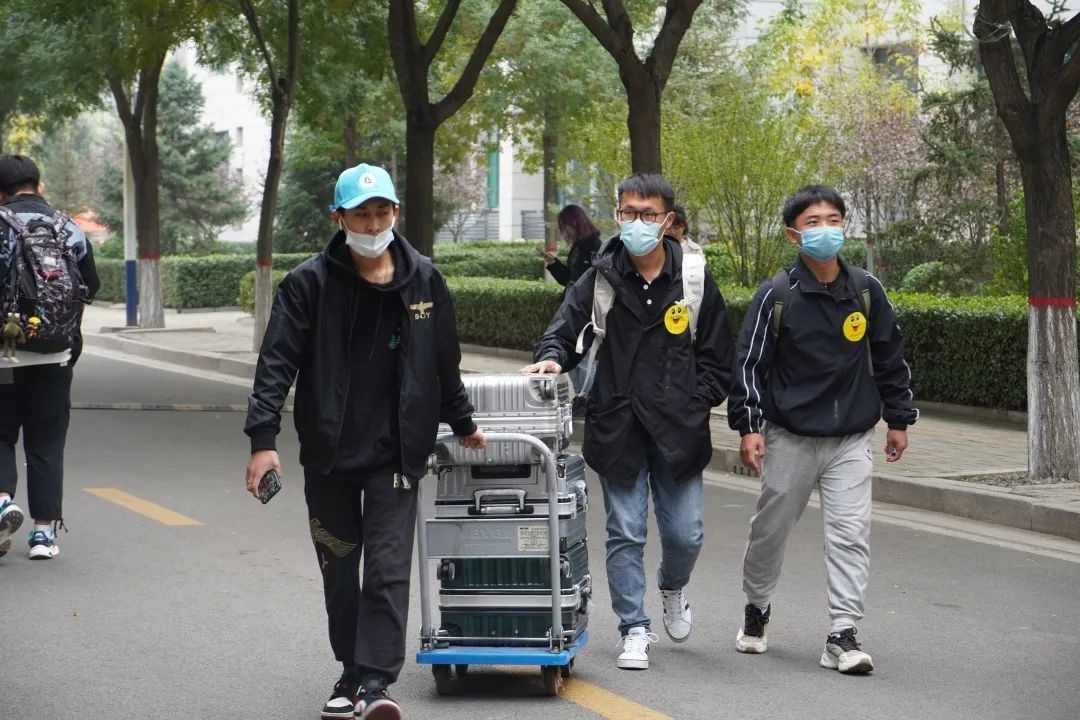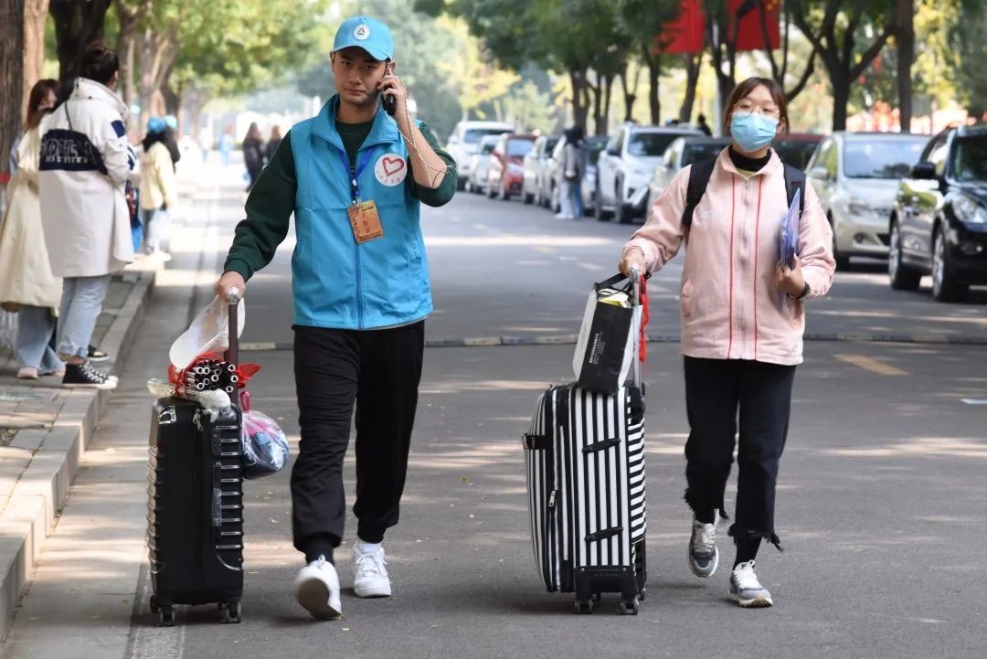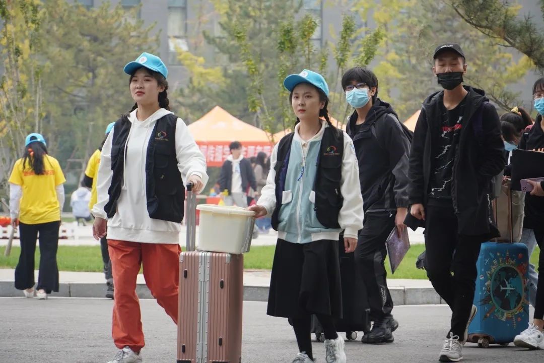 在新生抵达校门口报到时,志愿者引领新生步入校园,介绍校园内部环境和解决新生对校园的疑问,并领取校园卡,到寝室宿管进行报到至搬进宿舍的整个过程。