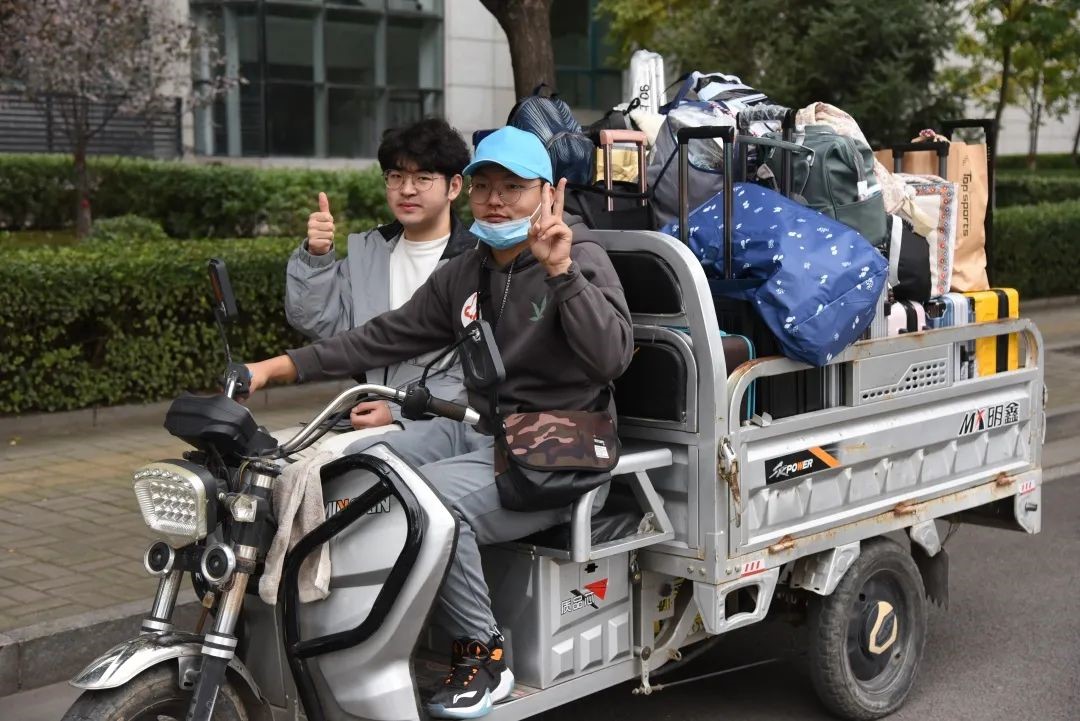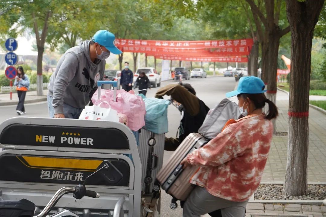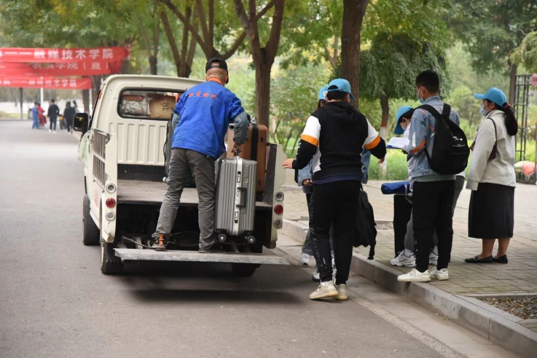志愿者与新生的身影处处可见,迎新的横幅鲜艳明目,新生报到流程图、方向指示牌,标识牌一目了然,小三轮、平板车来“接地气”,迎新现场洋溢着热情而又激动的氛围。