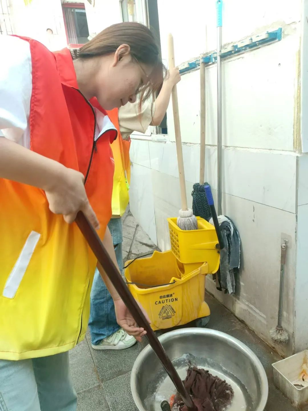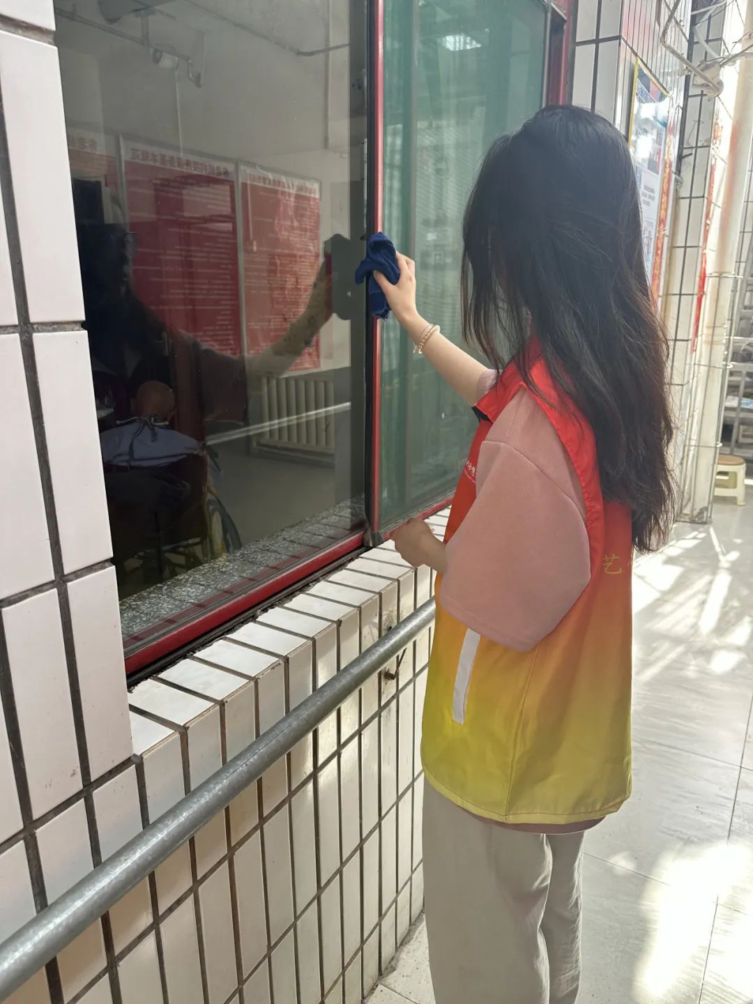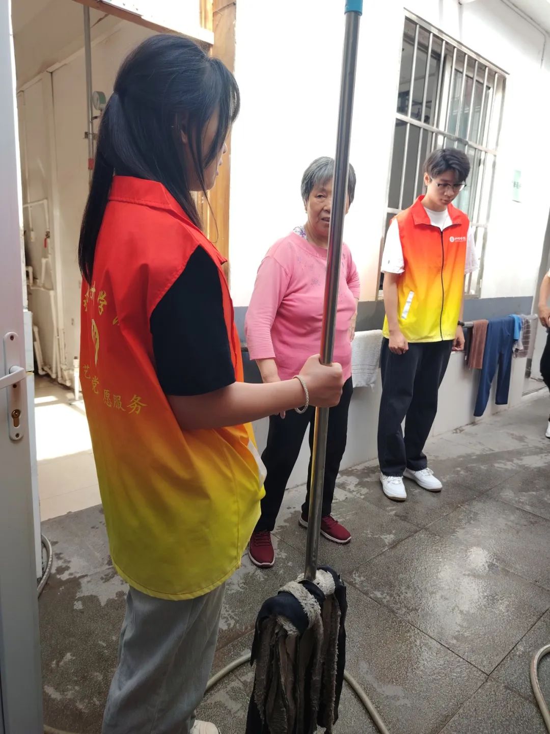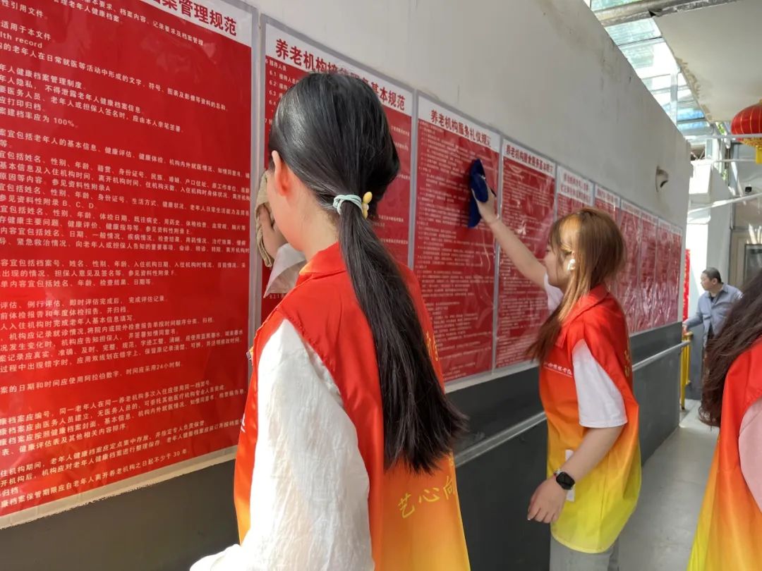 在活动的最开始,我们自发的分成几组,合理规划时间、有条不紊的进行大扫除,我们细心地打扫了老人们的房间将桌椅窗户进行擦拭,将地面扫清擦净,为老人带来了更加舒心整洁的环境。