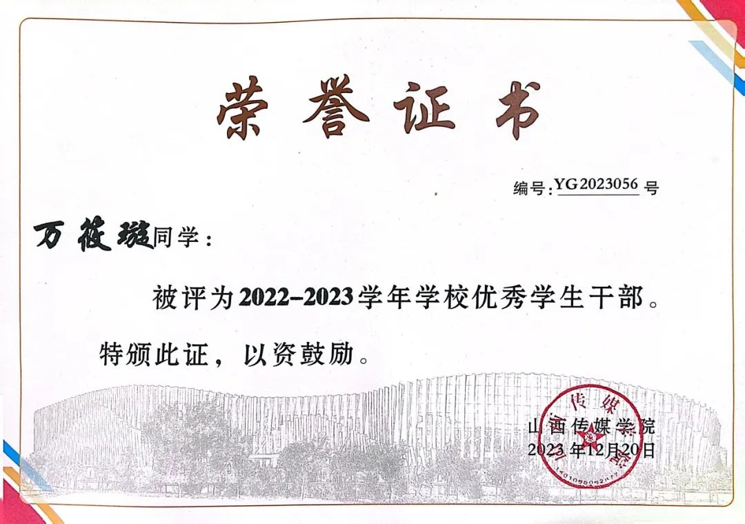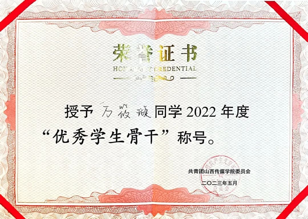 2023学年获得“优秀学⽣骨⼲”称号;