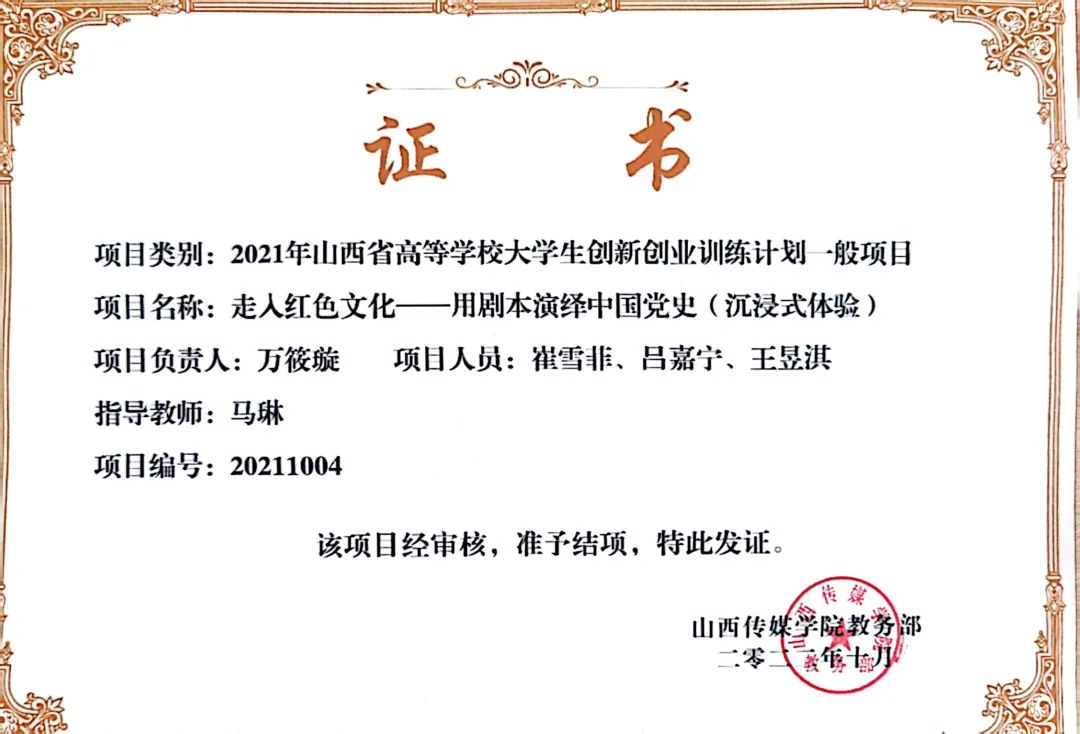 2021年“互联⽹+”⼤学⽣创新创业项⽬省级、校级 ;