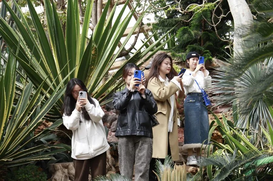 让同学们印象深刻的是热带雨林馆和沙生植物馆。大家用手机记录下了各种植物的姿态,深刻感受到不同环境中植物的外观变化,也感受到了植物所带有的生命力。