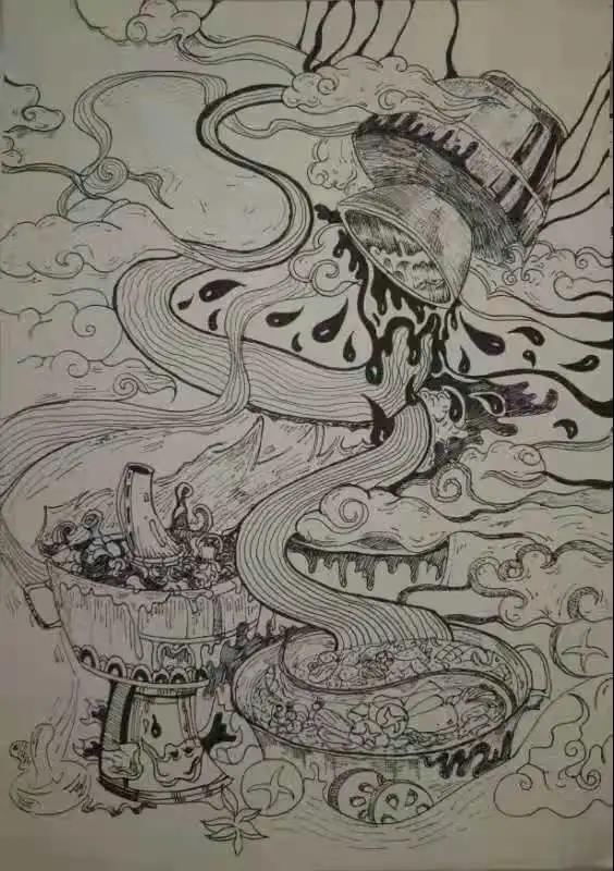 火锅是由古代起源的,每一种的说法都不同。如今是一个充满美食的世界,但是最令我回味的仍是火锅,于是就有这样一个城市可以满足人们对火锅渴望的愿望,各式各样的火锅成为了人们的依托,人们不仅能吃上甚至还可以住进去,缭绕的云朵构成的背景让人感觉仿佛进入到了仙境,烟雾铺成的道路通向天空,天上与地上彼此呼应、联系。