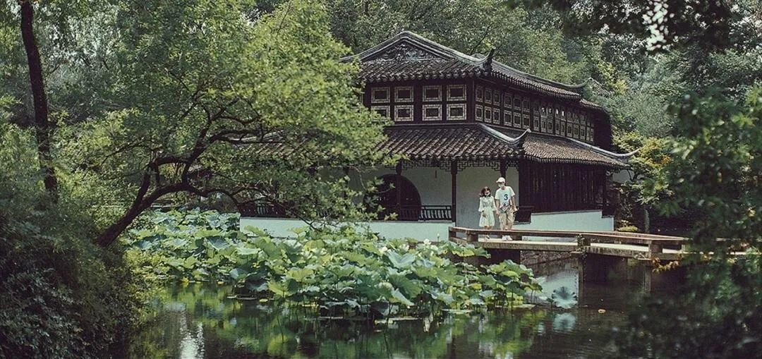 山上各有一亭,处于山花野鸟之间,颇有“蝉噪林逾静,鸟鸣山更幽”的诗情画意。山阜西侧有六角形敝亭,名“荷风四面亭”,当面文徵明颇喜欢这里的情致,曾依园中景物绘图三十一副,各系以诗。