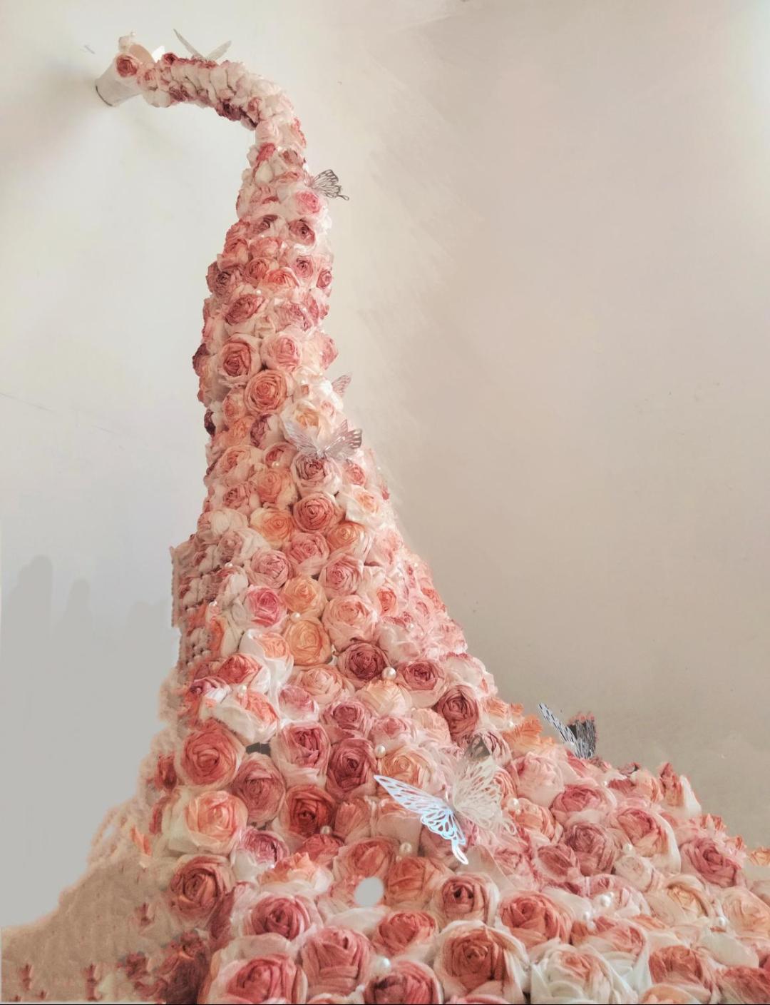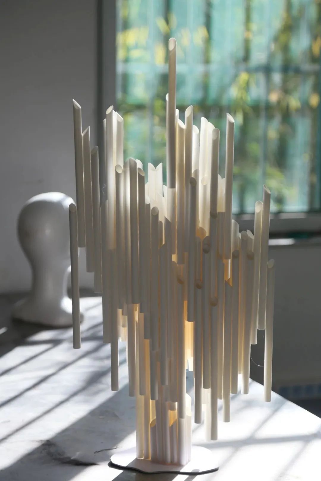 设计理念:那种小心翼翼,却又欢喜得追逐触而即碎的梦。用吸管定格了这一零散的梦构造,富有肌理的吸管层。在一个不规则的平面上独立又互相关联。生活中亦是如此,一人难顺百人意,保持心底的善良和纯洁。总有一天心里苦苦支撑的梦会被人认可,也许正因为梦易逝,这定格的瞬间才会更加纯白无瑕。