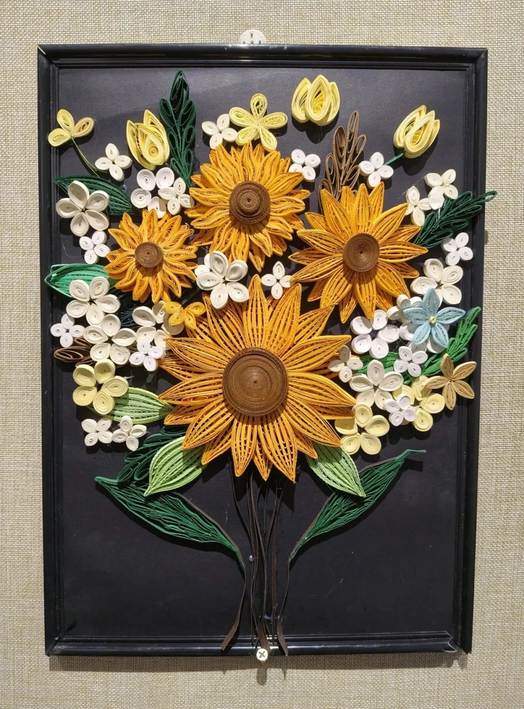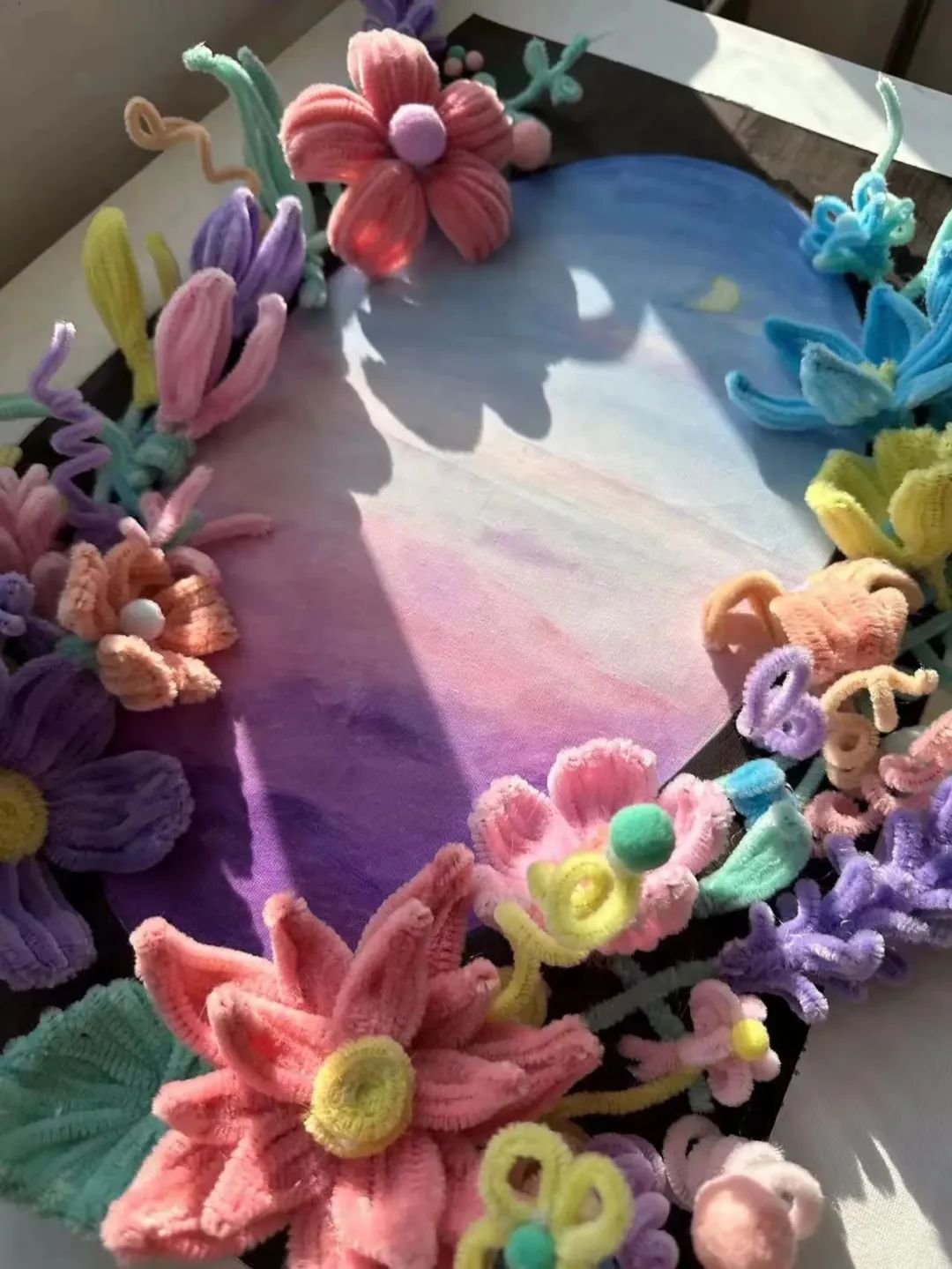 设计理念:这幅画作以扭扭棒为主题,突出了夜晚和花的元素,营造出一种神秘、浪漫的氛围。画面中的扭扭棒作为窗户的装饰,融入了花的形态和线条,使整幅画作更加协调和统一。在夜晚的背景下,散发出淡淡的光彩,仿佛向人们展示着一个神秘的世界。而婀娜多姿的花朵则在夜晚的静谧中悄然舞动,绵延不绝的花海中,诉说着生命的美好与奇妙,令人陶醉。