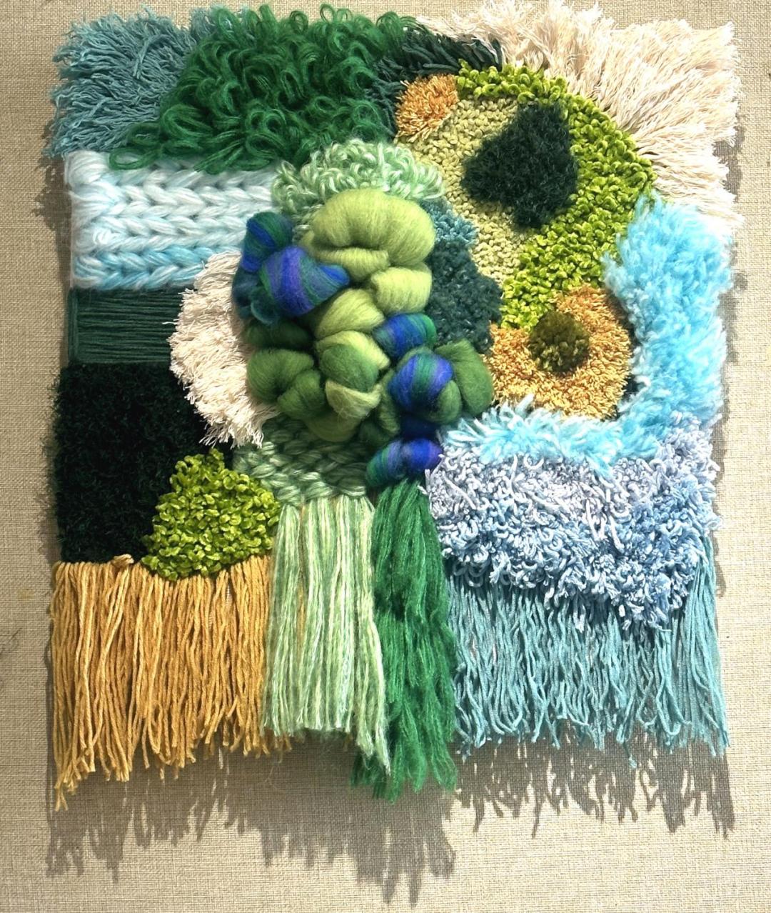 设计理念:苔藓植物的生长伴随着溪水的流动,带来一种静谧的氛围,给人带来舒适、放松的感觉。大面积的绿,也让环境充满生机。“苔藓触感”以多维度视角展现大自然中的苔藓地衣与纺织品之间的设计艺术表达。大自然主题的抽象图案与手工簇绒肌理结合,展现出五颜六色的自然面貌。