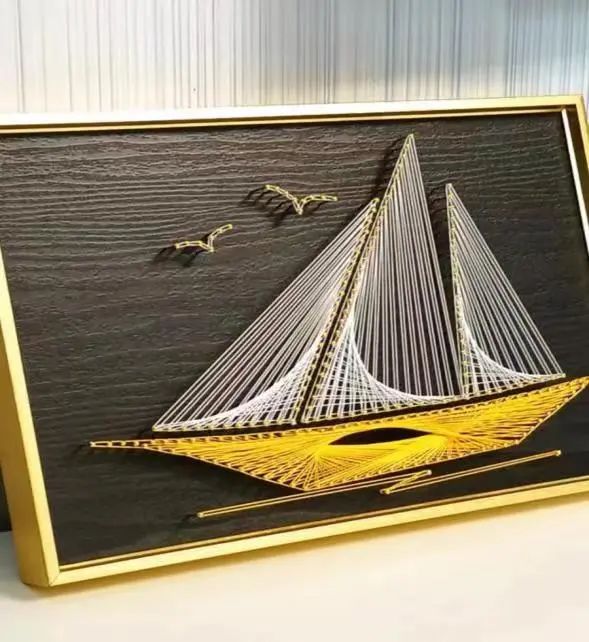 设计理念:缠线帆船、海鸥、海浪等元素展现海洋的美丽和神秘。缠线工艺是一种传统的工艺手法,而帆船则是现代的交通工具之一。将两者结合,既体现了传统工艺的魅力,又融入了现代元素,具有很强的视觉冲击力和艺术感。