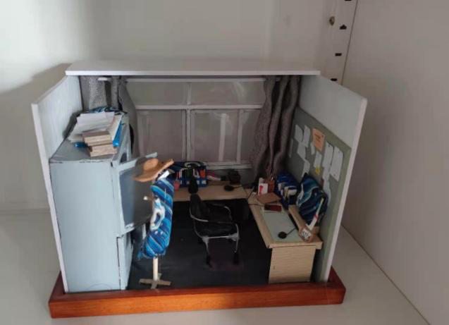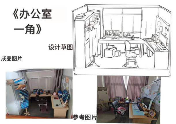 设计思路:灵感来源于看到老师办公室的一角,充满了生活的气息,所以选择了这一-角进行了复刻和一定的改动。我制作了办公室里面常见的物件进行模型的填充,也加入了参考图片中办公室老师自己特有的风格和小物件,让模型看起来更加生活化。