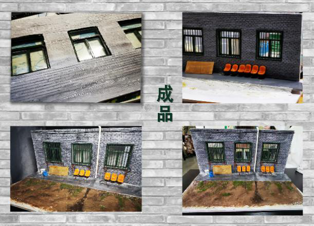 我采用的材料是abs板-棒,kt板,喷漆,软陶,亮油,泡沫,颜料,纸板等等,利用泡沫裁切出大概的形状,中间掏空,用软陶捏出便池,利用uv胶还原地上的水,石膏粉来填空砖缝,做旧等等来在原有的模型上找到更多的生活气息。以上就是我的厕所模型的制作思路。