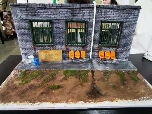 最终版模型延伸了两侧栅栏,使整体长度大大增加,并加之用砂纸反复研磨过的真实土壤,模拟出现场地貌环境。