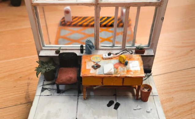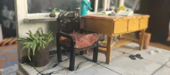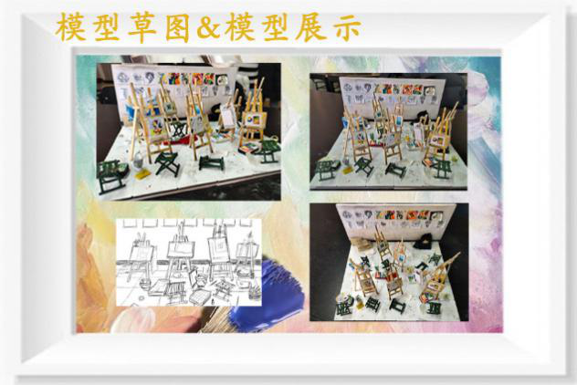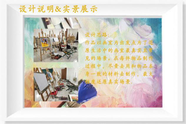 设计思路:作品以画室为出发点,为了还原生活中的画室最真实且常见的场景。在每件物品制作过程中,尽量去用和物品本身一致的材料去制作,最大程度还原真实场景。