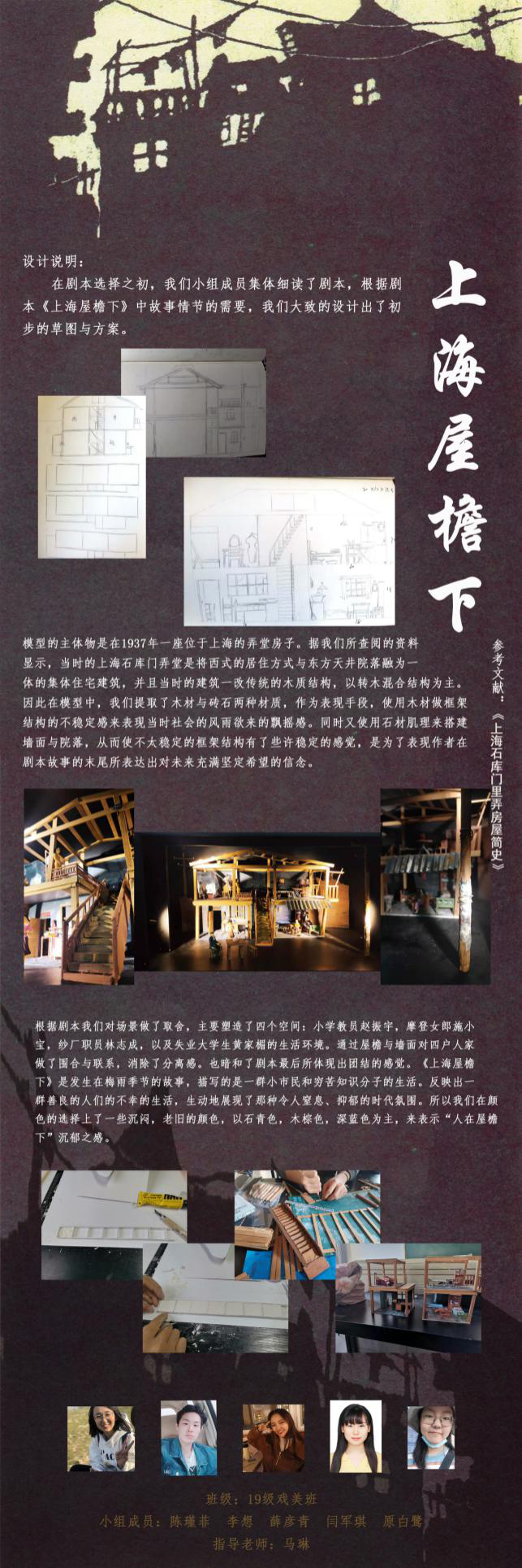 本次参展人员为2019级戏剧影视美术设计全体同学,展品涉及生活的场景(个人作业)舞台独幕剧展示(小组作业)。