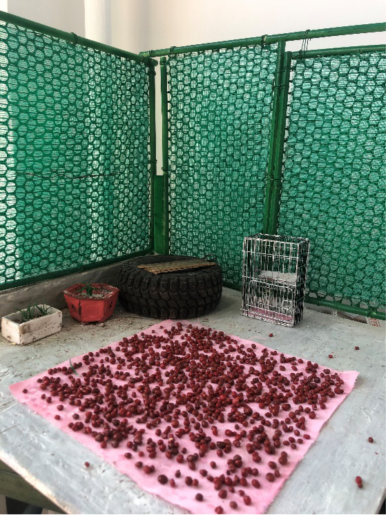 设计思路:此次作业的主题是“观察生活练习”,我所找的场景处于游泳馆后门附近、操场西北角外围的一个角落。寻找场地的当天,碰巧看到住在附近的工作人员晒了一地的红枣,周围刚好有一些花盆、宠物笼子、以及堆放的杂物,就很有生活气息。