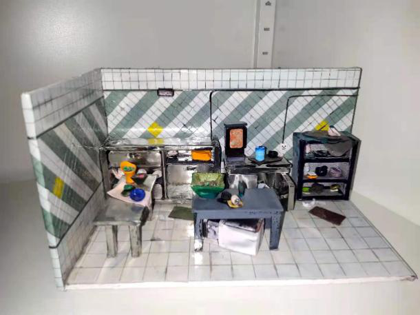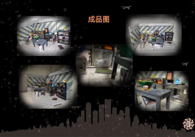 制作材料:1.墙体,橱柜等主要使用KT板、亚克力板,并做旧,使其更具有真实性。