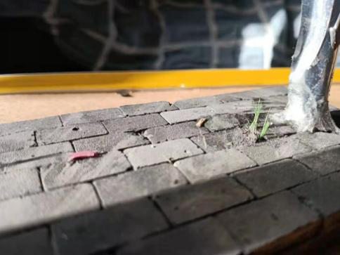 为了让整个模型看起来有陈旧感,有经历时间的痕迹,用纸黏土轻铺一层,干了之后扣开,就有了地面的破碎感。