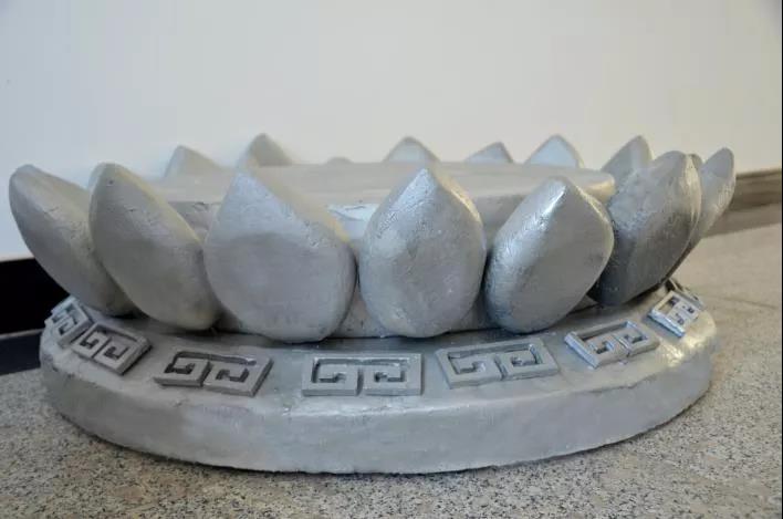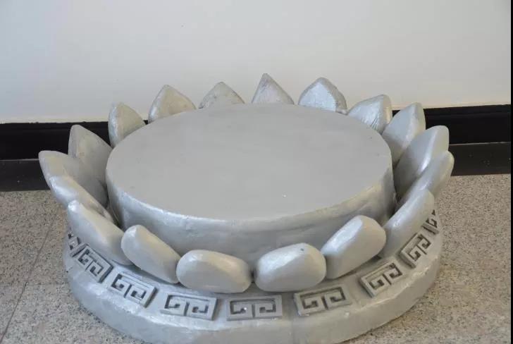 石灯一般由灯室、灯柱和灯座构成,作品在此基础上融入唐朝石灯外形特征,从上至下,为宽-窄-宽-窄-宽的造型,更显柔和,协调。
