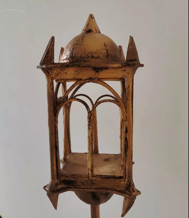 在灯座设计里,视觉效果多为方形,给人一种稳重感,灯室,灯座使用部分圆润的线条,使得作品更加饱满。灯顶和灯室中部分采用三角(尖)的形状,为作品添加一些跳跃,活泼的元素。让作品更加丰富,不再单一。