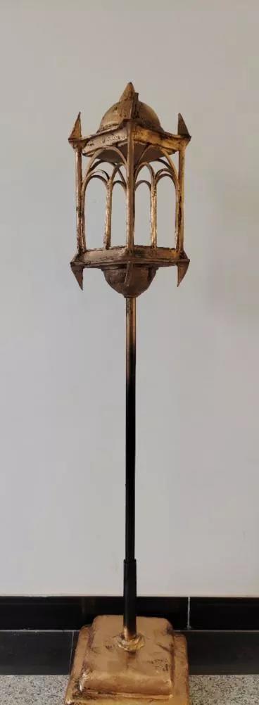 该道具源自意大利的smeraldo(翡翠花)的传说,一位长相非常丑陋的男人的古堡中的庭院灯,具有装饰性,欧式有着其独特的风格,斑驳的表面诉说它的故事和庭院的破落。