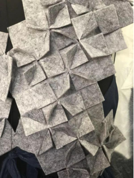从设计草图、效果图、款式图、结构图、面料、裁剪、缝制、饰品制作,每位同学都经历了完整的设计师流程,更值得一提的是,今年的作品中同学们运用更多新型材料去丰富面料设计及改造,尝试更大胆的立体裁剪方式去完成自己的创意灵感,最后将最初的“创意灵感”转变为最终的“落地实现”。