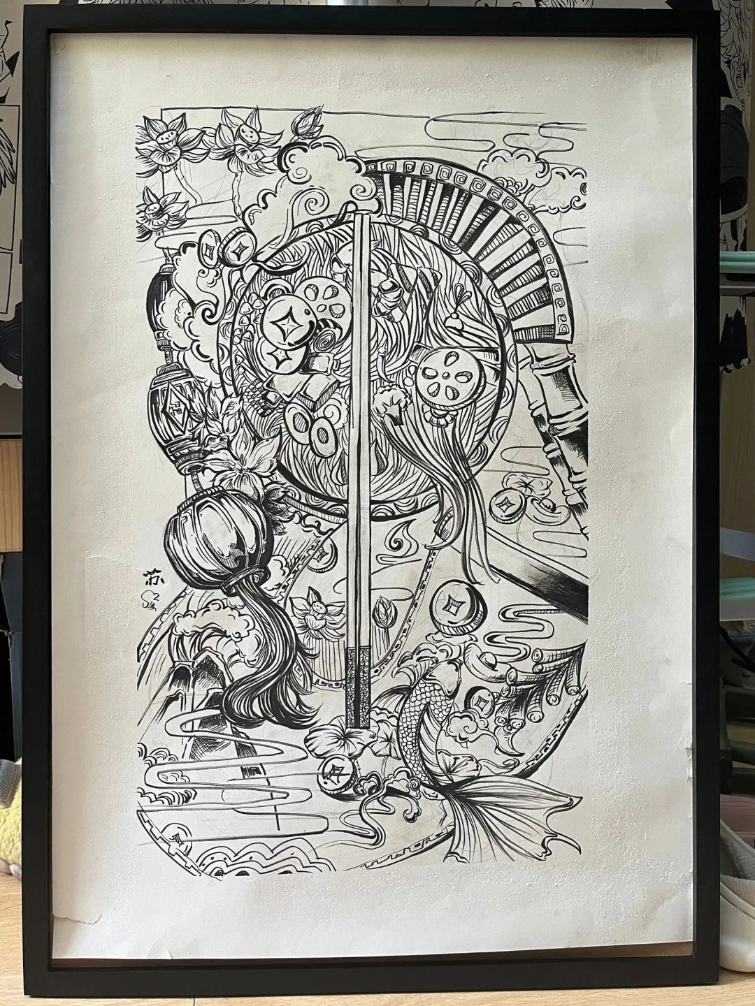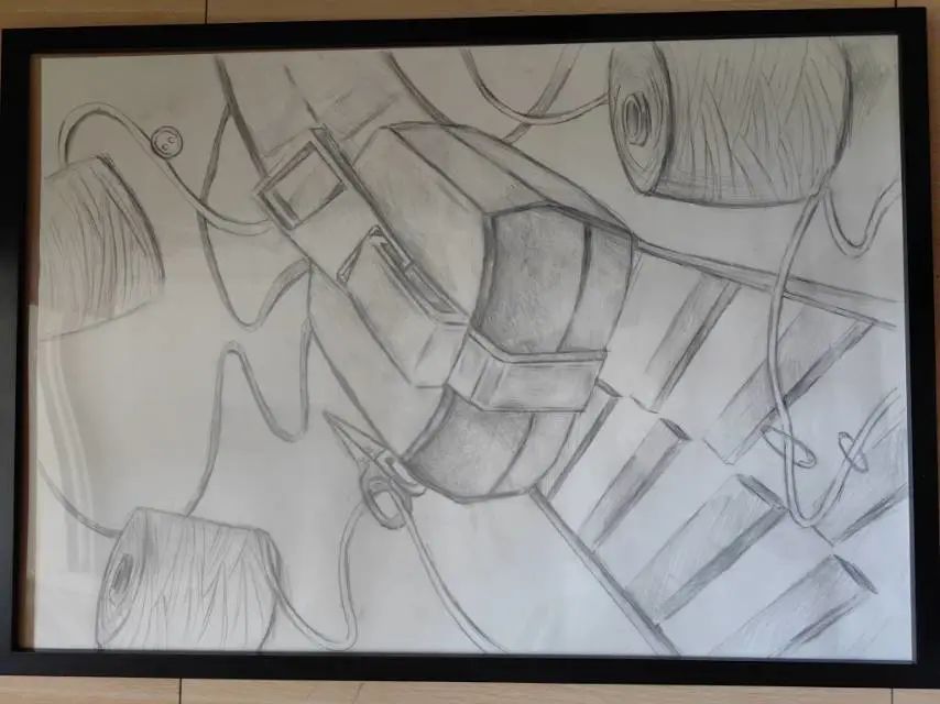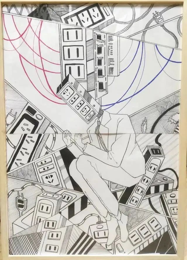 设计说明:利用设计素描中所学的拆分重组所完成的一幅作品,把眼镜的结构进行拆分,然后把他们重组成一组植物。通过几何图型对画面进行切割,使画面内容更加丰富。